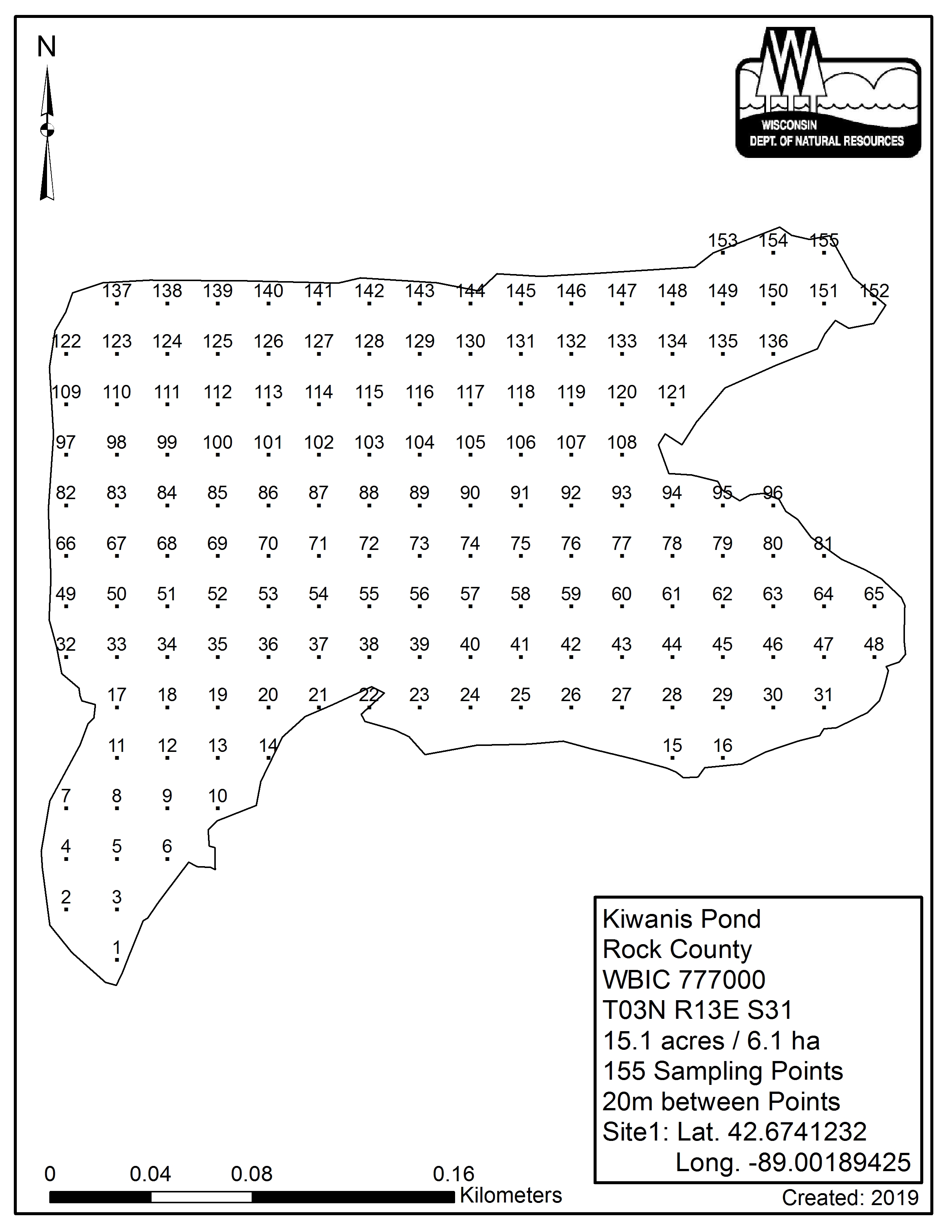 Kiwanis Pond, Rock County - Aquatic Plant Sampling Map (20 mpts)