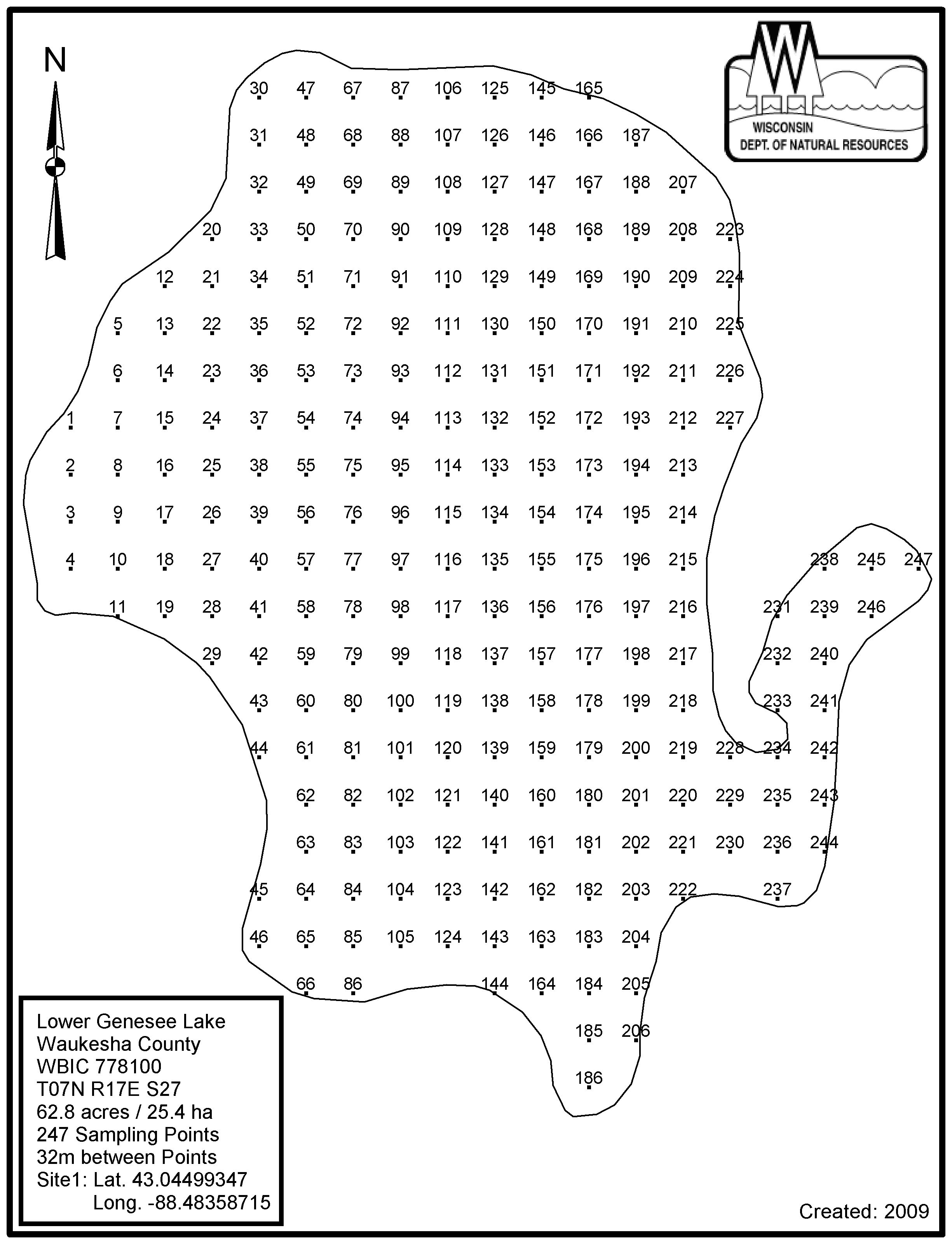 Lower Genesee Lake, Waukesha County - Aquatic Plant Sampling Map (32 mpts)