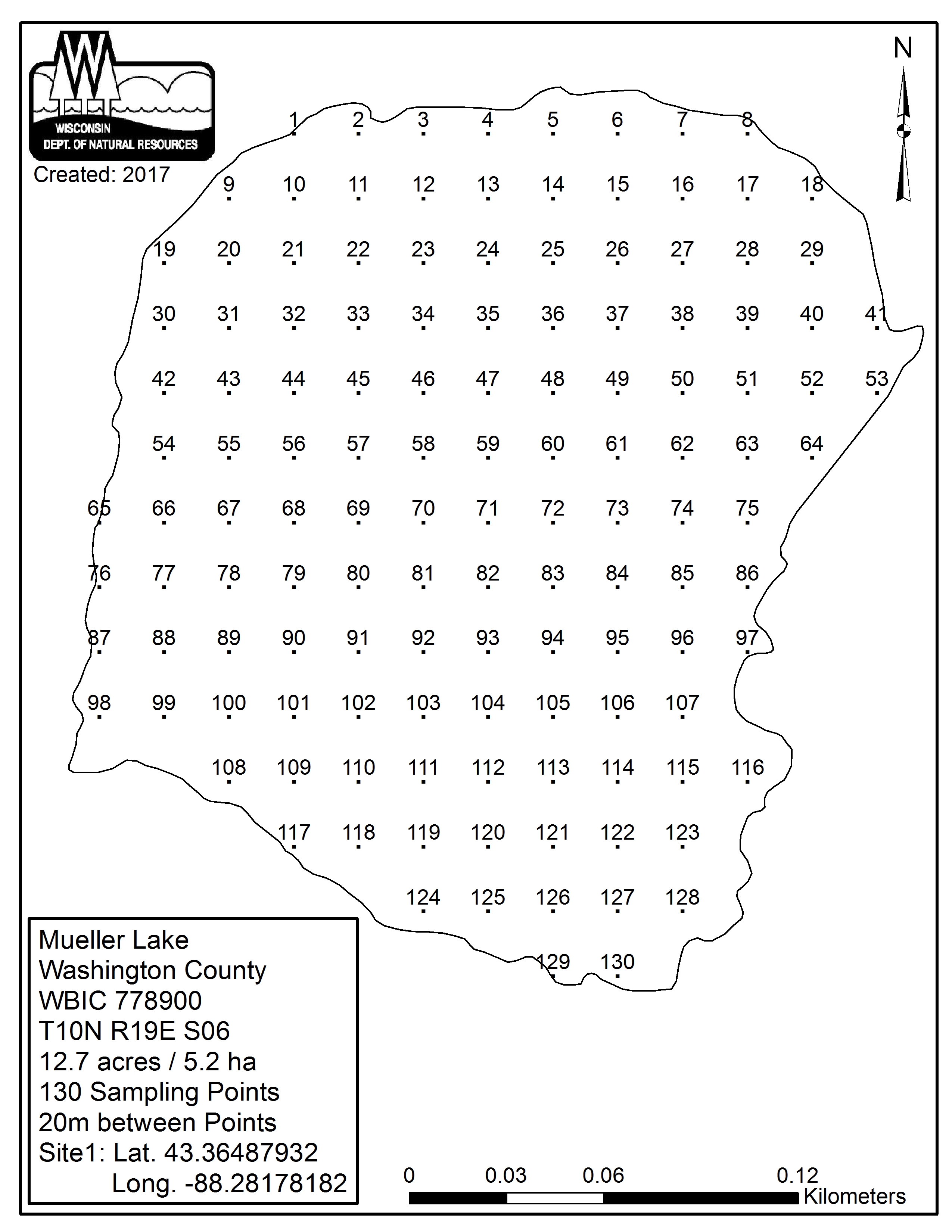 Mueller Lake, Washington County - Aquatic Plant Sampling Map (20 mpts)
