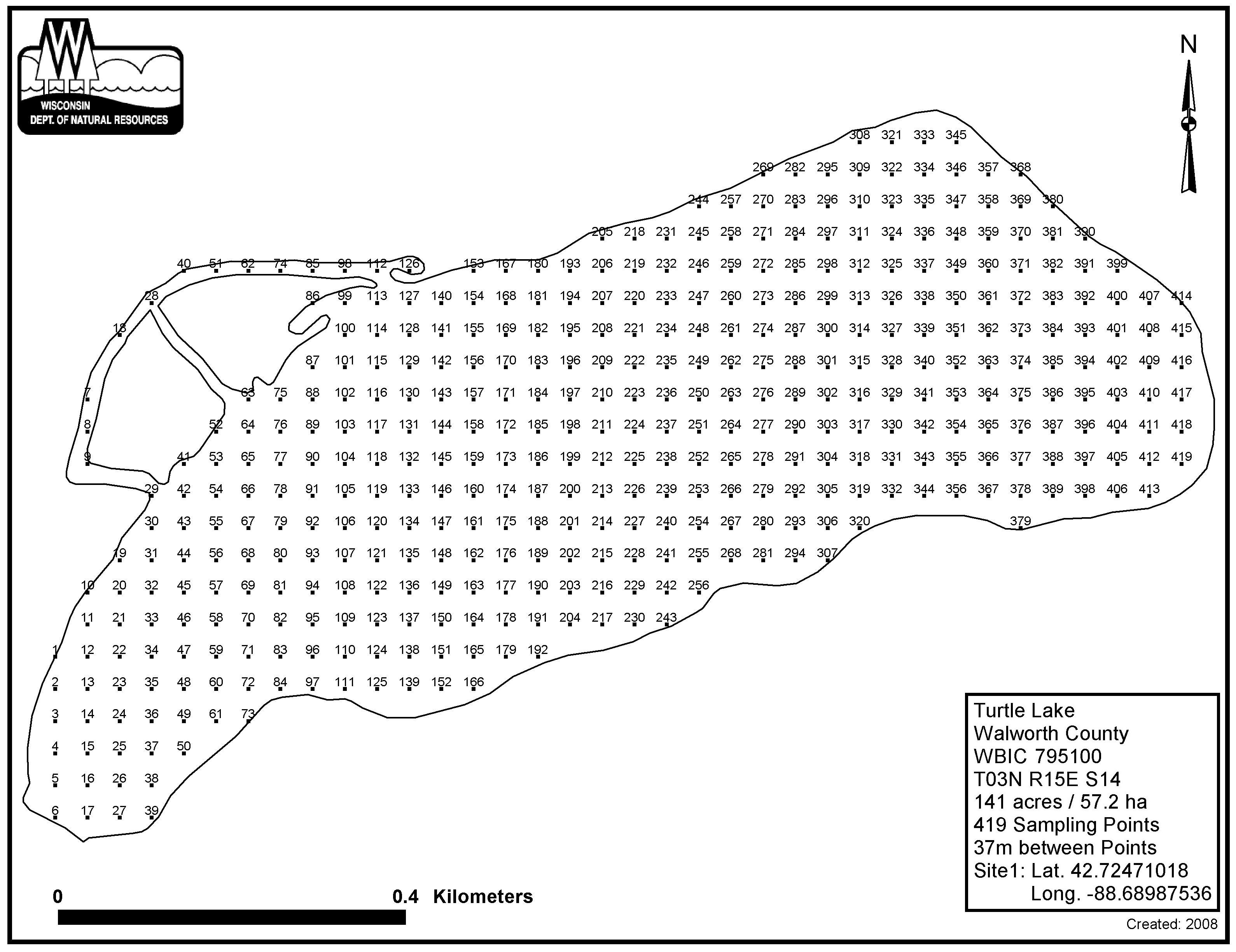 Turtle Lake, Walworth County - Aquatic Plant Sampling Map (37 mpts)