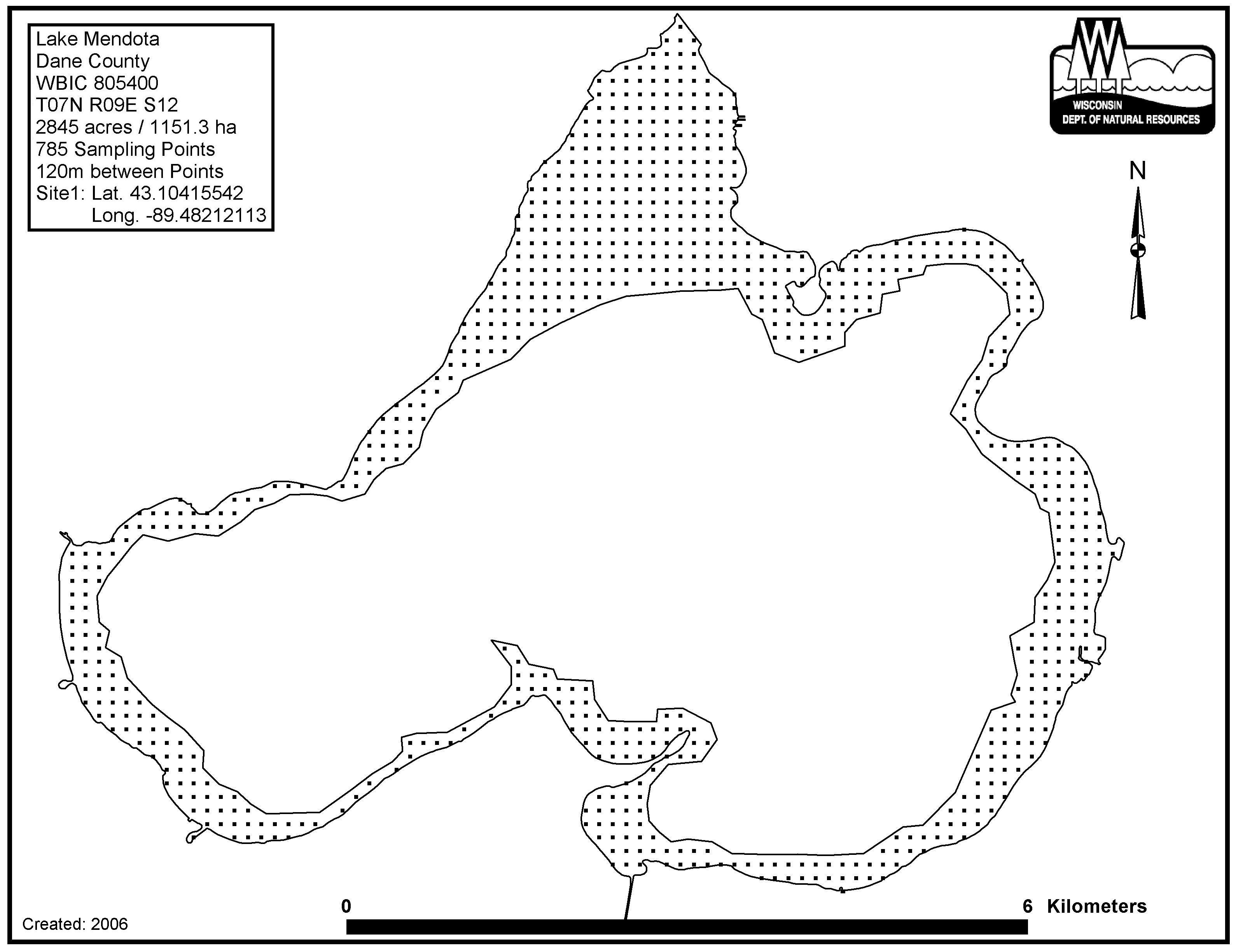 Lake Mendota, Dane County - Aquatic Plant Sampling Map (3)(120 mpts)