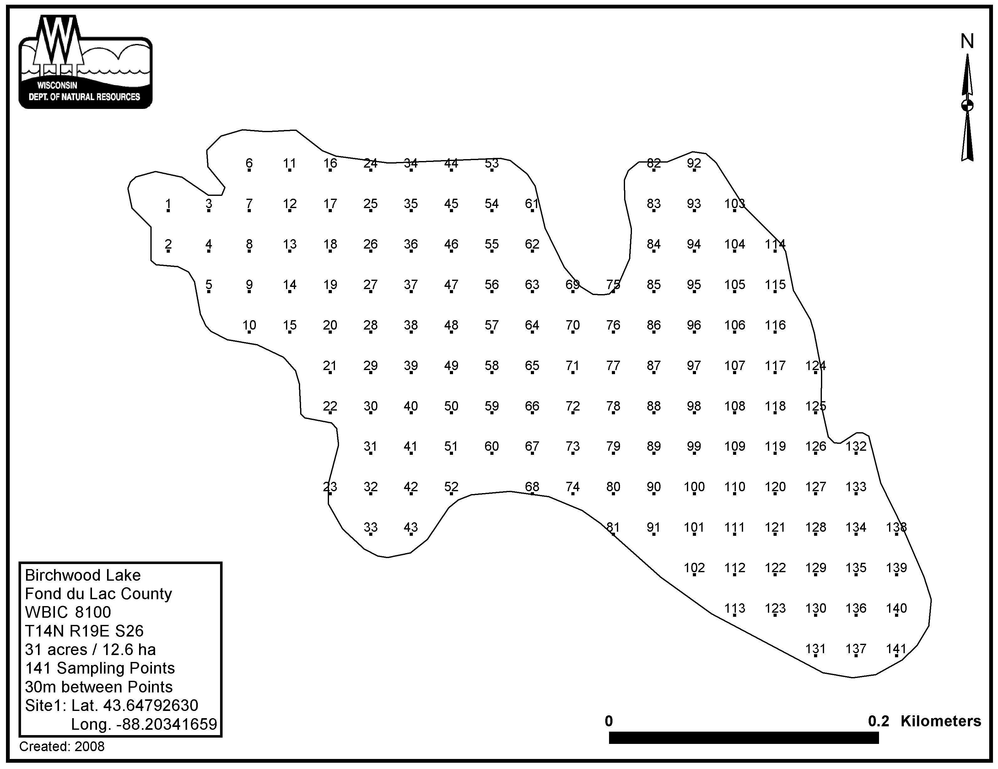 Birchwood Lake, Fond du Lac County - Aquatic Plant Sampling Map (30 mpts)