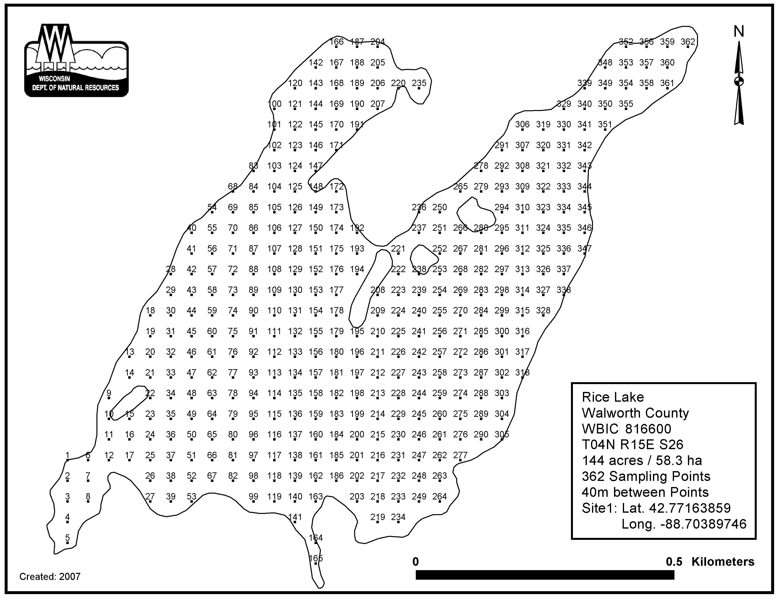 Rice Lake, Walworth County - Aquatic Plant Sampling Map (40 mpts)