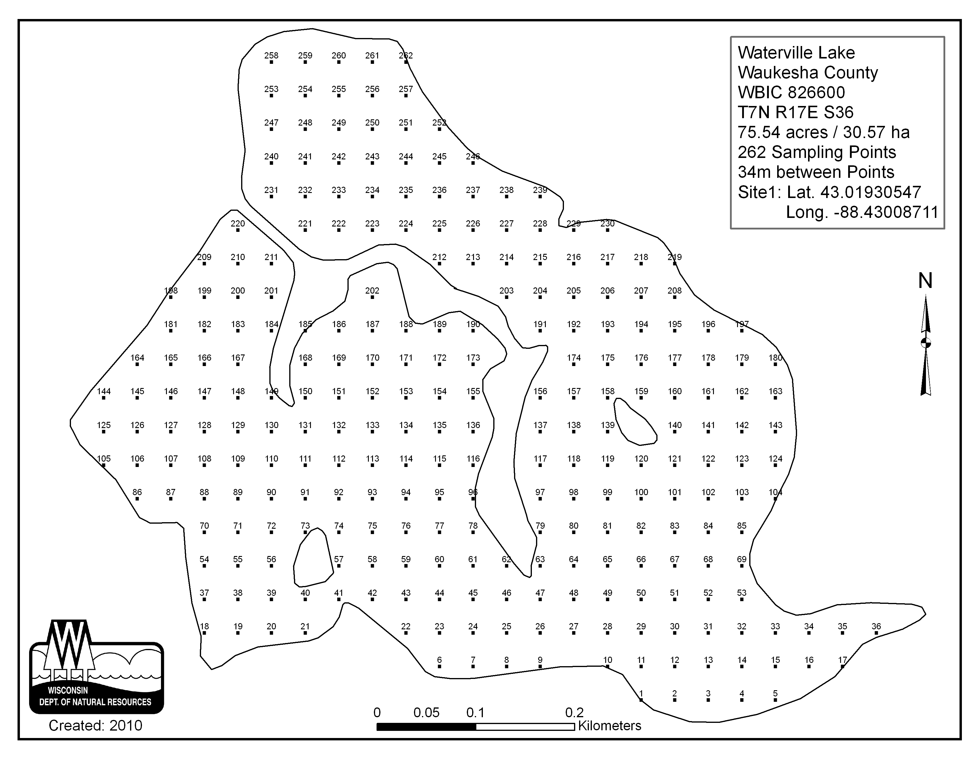 Waterville Lake, Waukesha County - Aquatic Plant Sampling Map (34 mpts)
