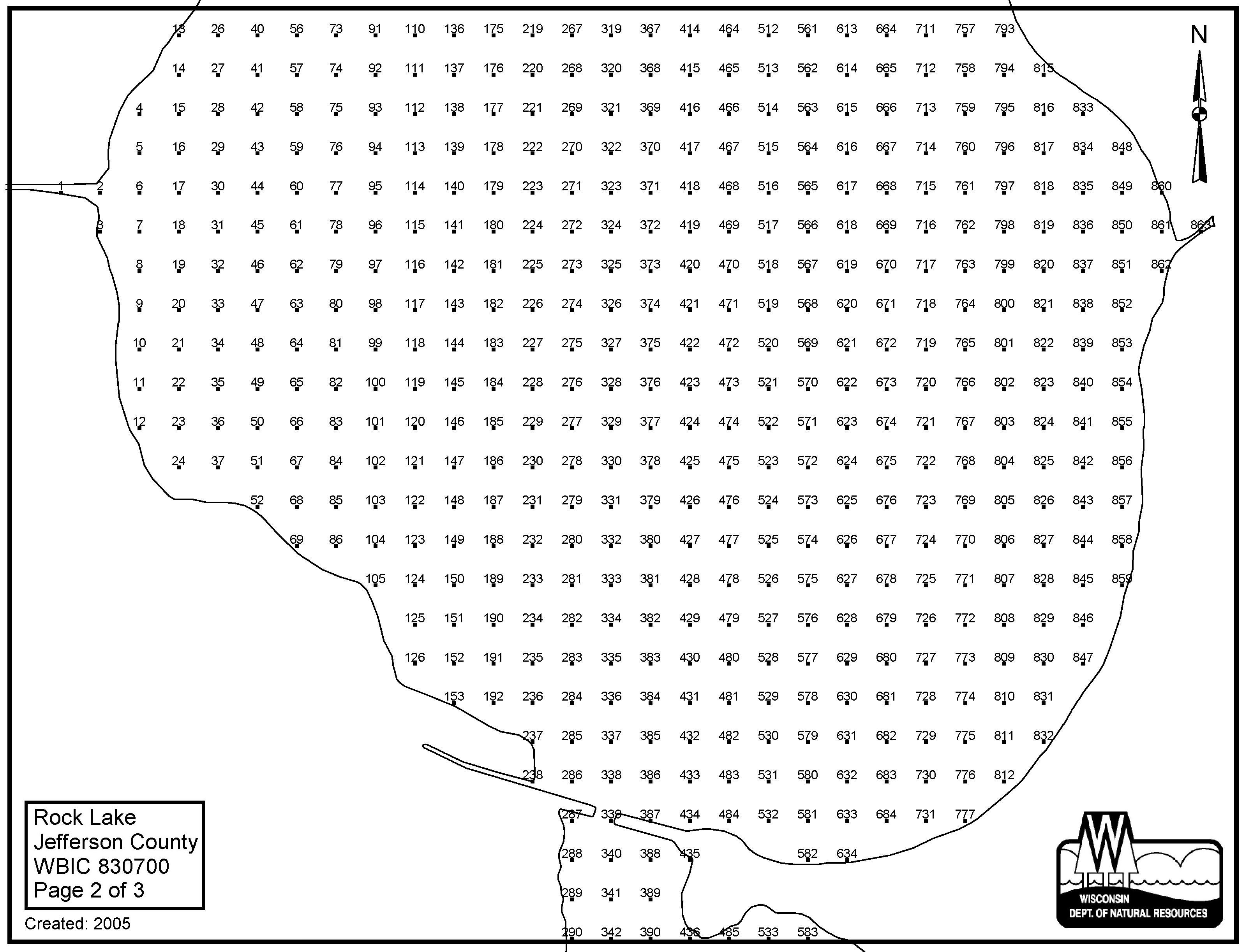 Rock Lake, Jefferson County - Aquatic Plant Sampling Map (2)(80 mpts)