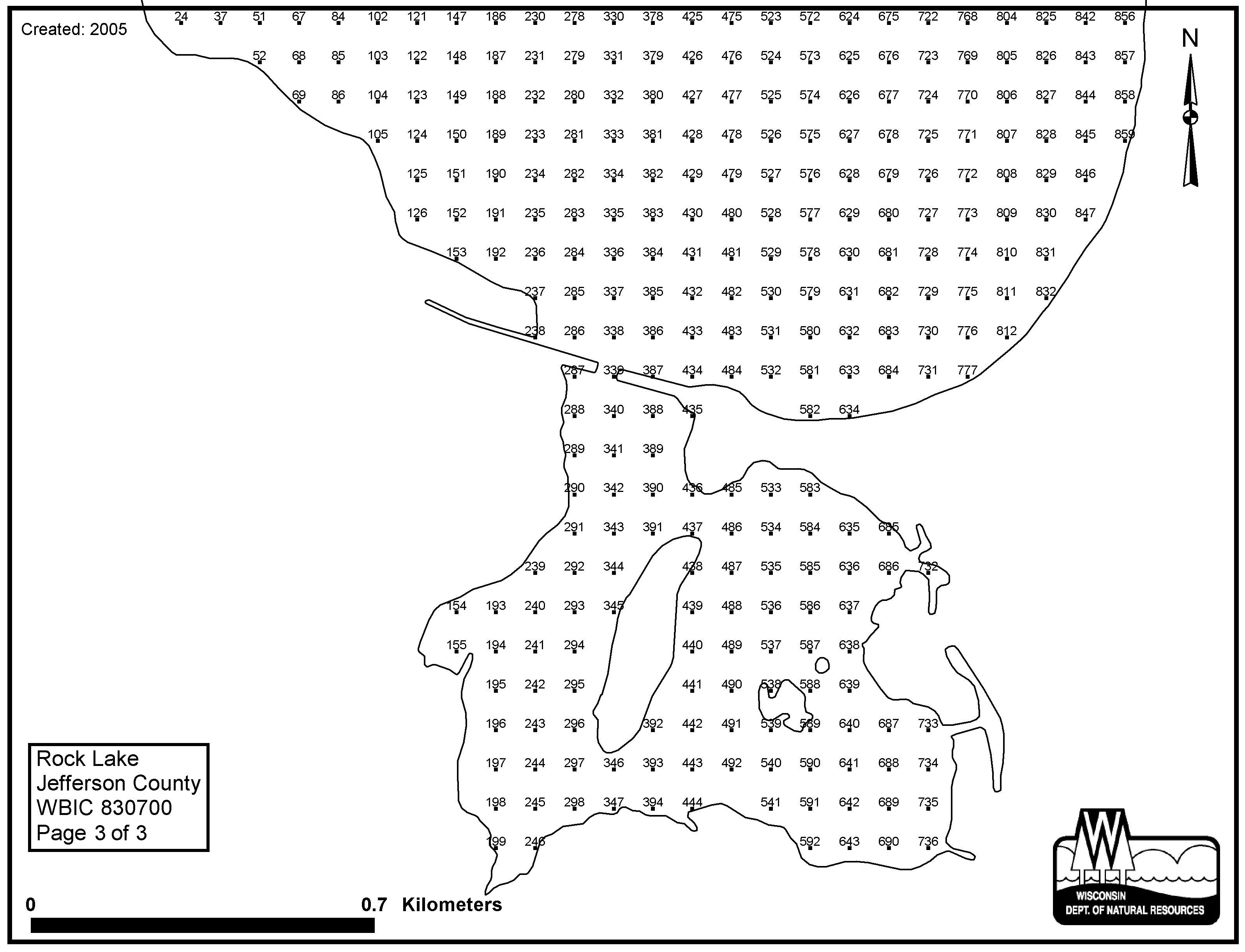 Rock Lake, Jefferson County - Aquatic Plant Sampling Map (3)(80 mpts)