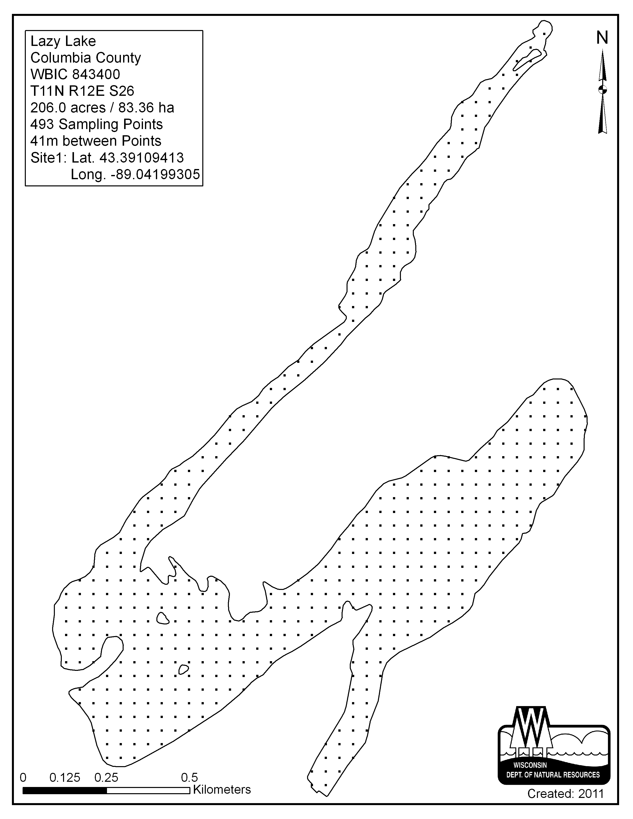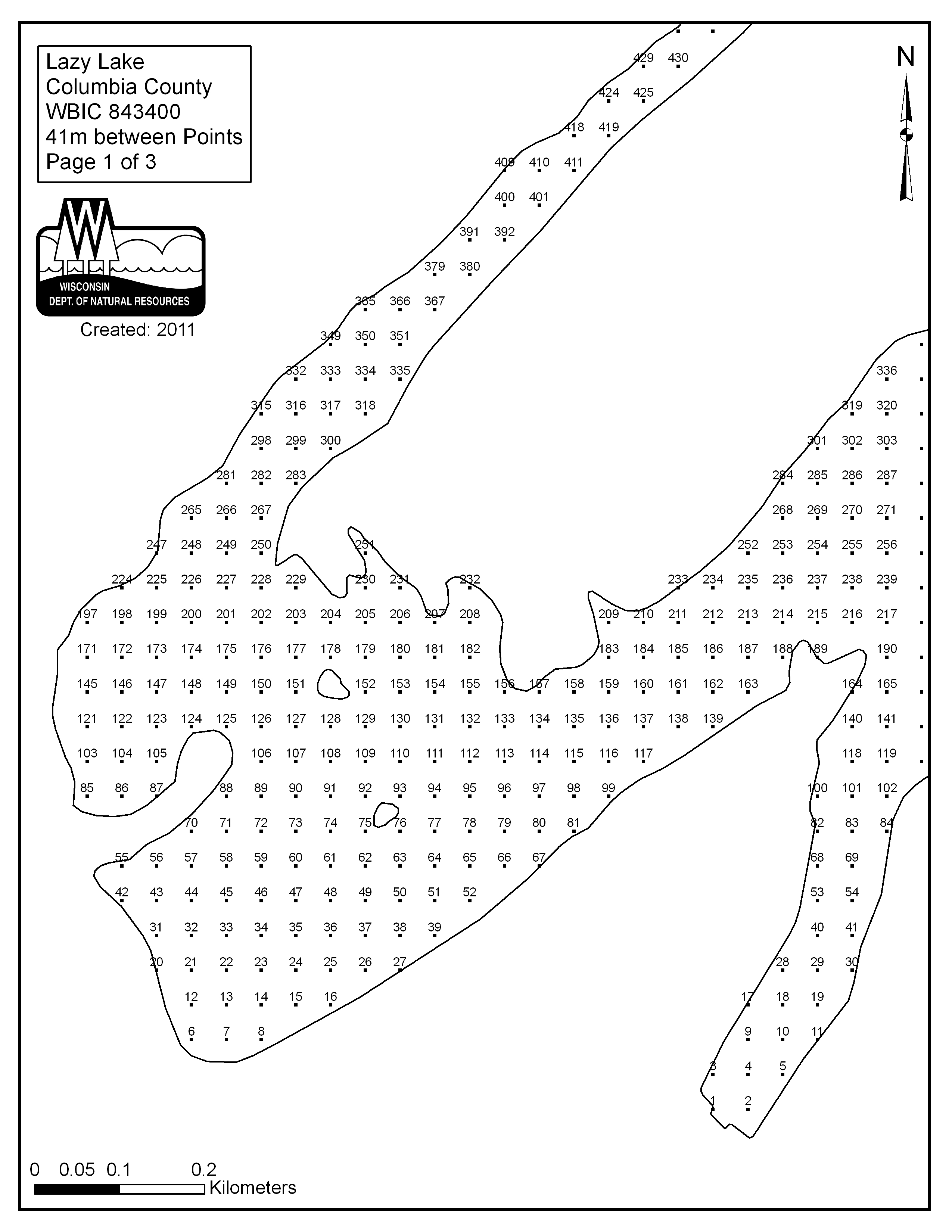 Lazy Lake, Columbia County - Aquatic Plant Sampling Map (1) (41 mpts)