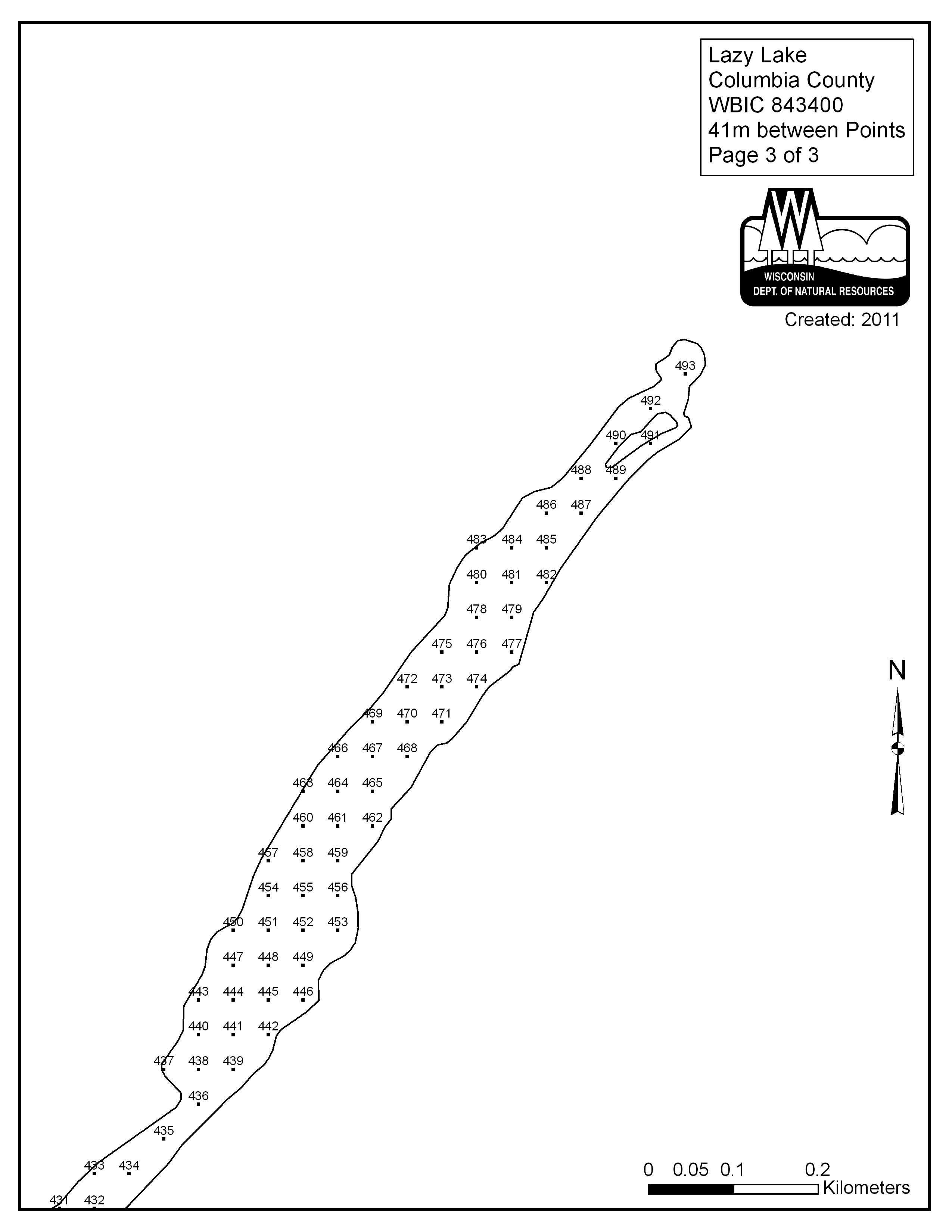 Lazy Lake, Columbia County - Aquatic Plant Sampling Map (3) (41 mpts)