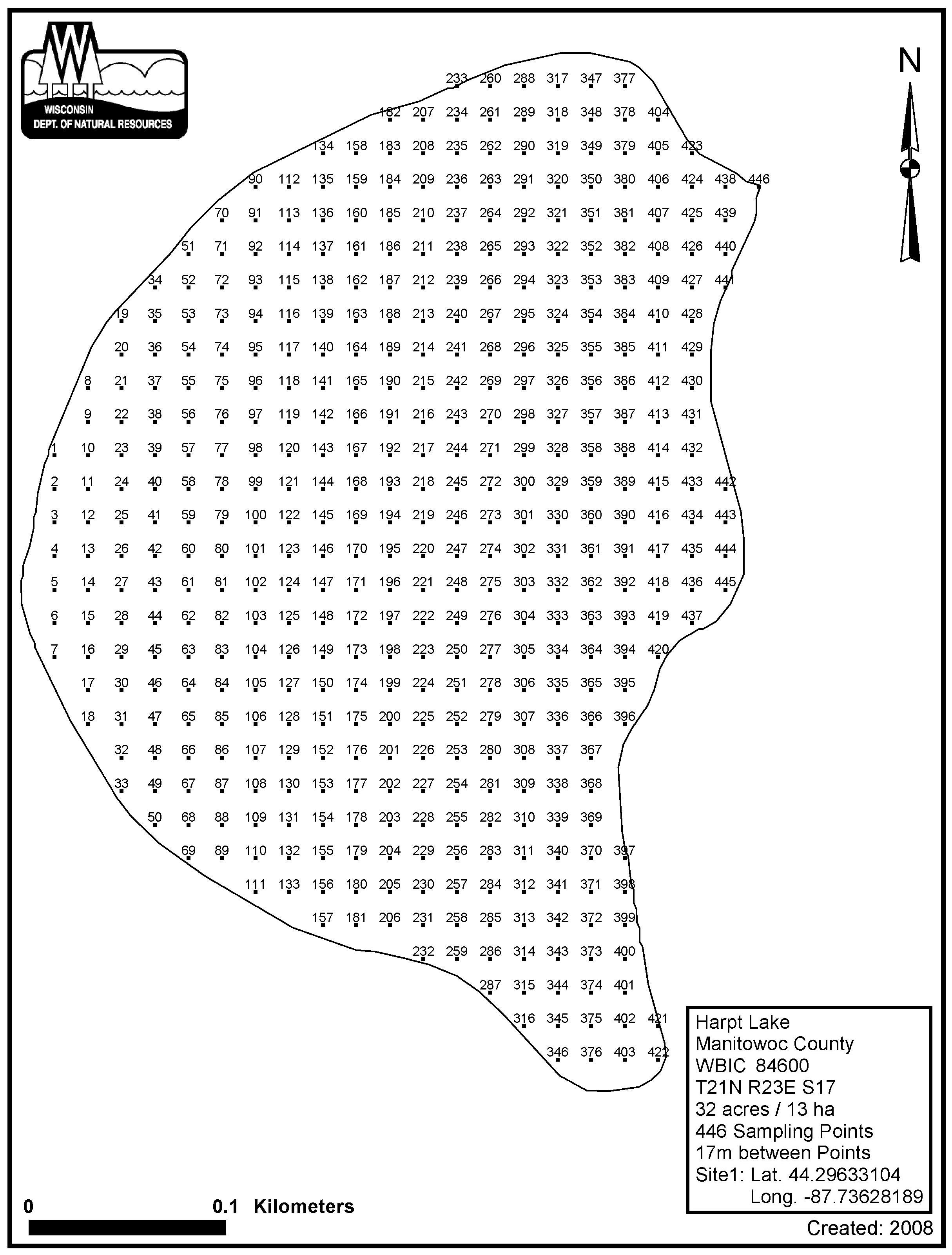 Harpt Lake, Manitowoc County - Aquatic Plant Sampling Map (17 mpts)