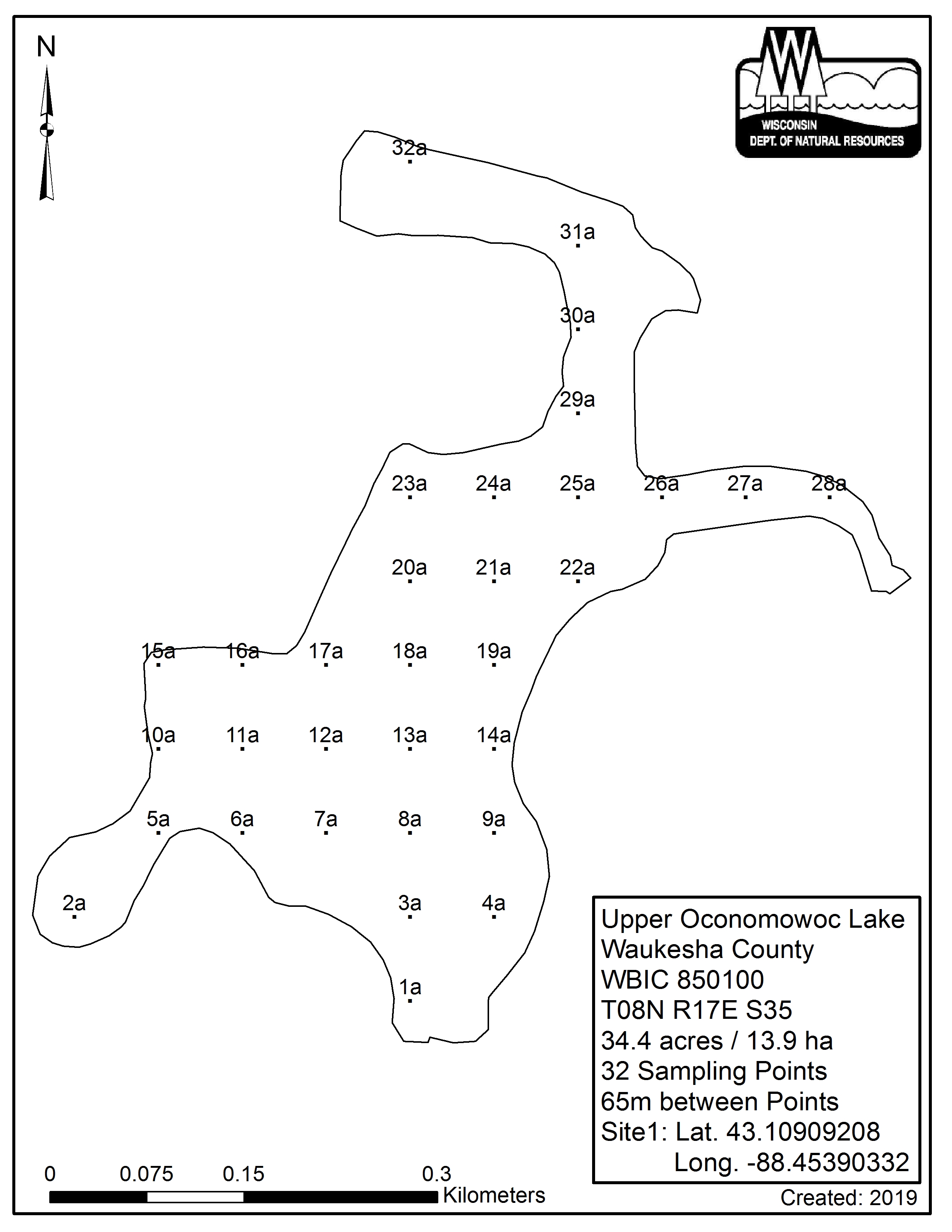 Upper Oconomowoc Lake, Waukesha County - Aquatic Plant Sampling Map (65 mpts)