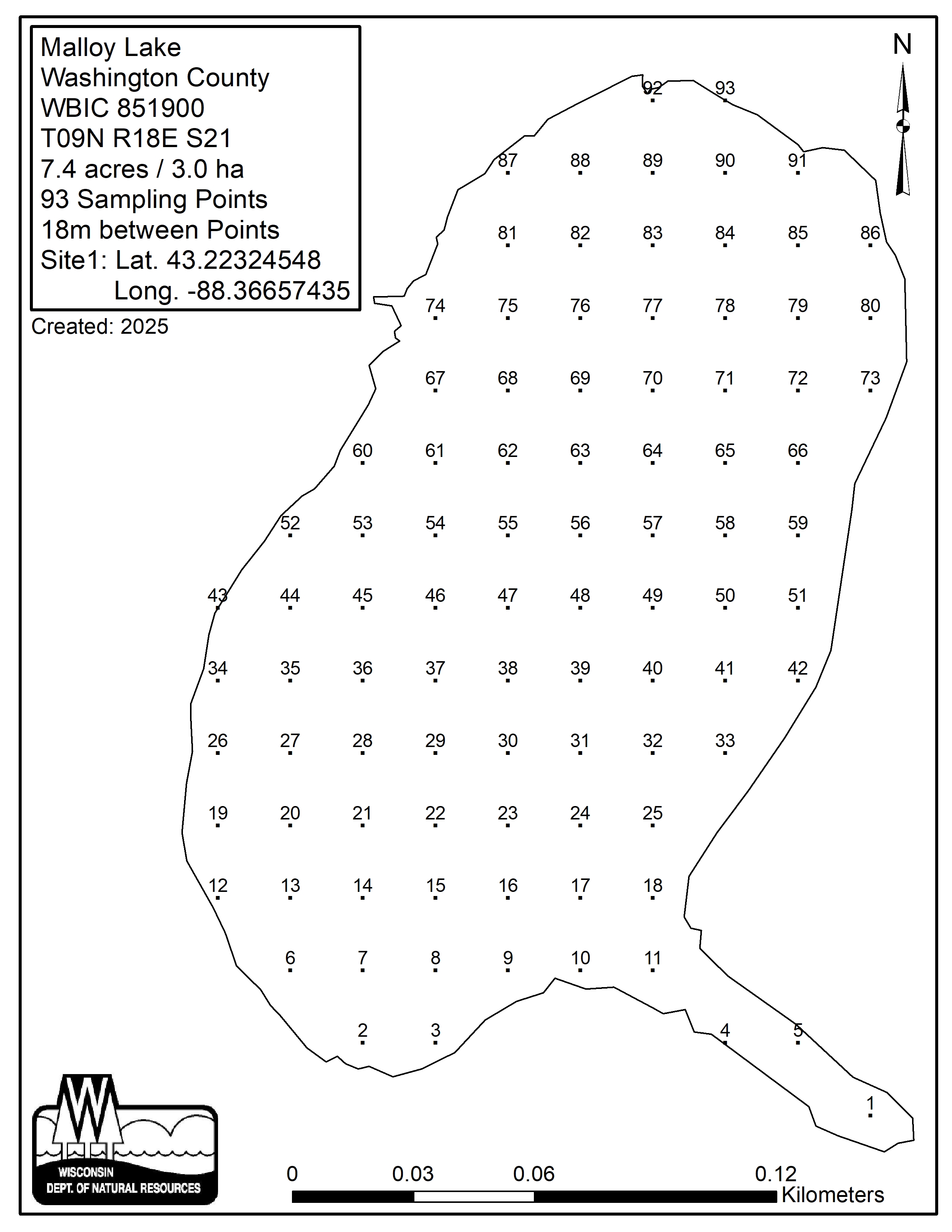 Malloy Lake, Washington County - Aquatic Plant Sampling Map (18 mpts)
