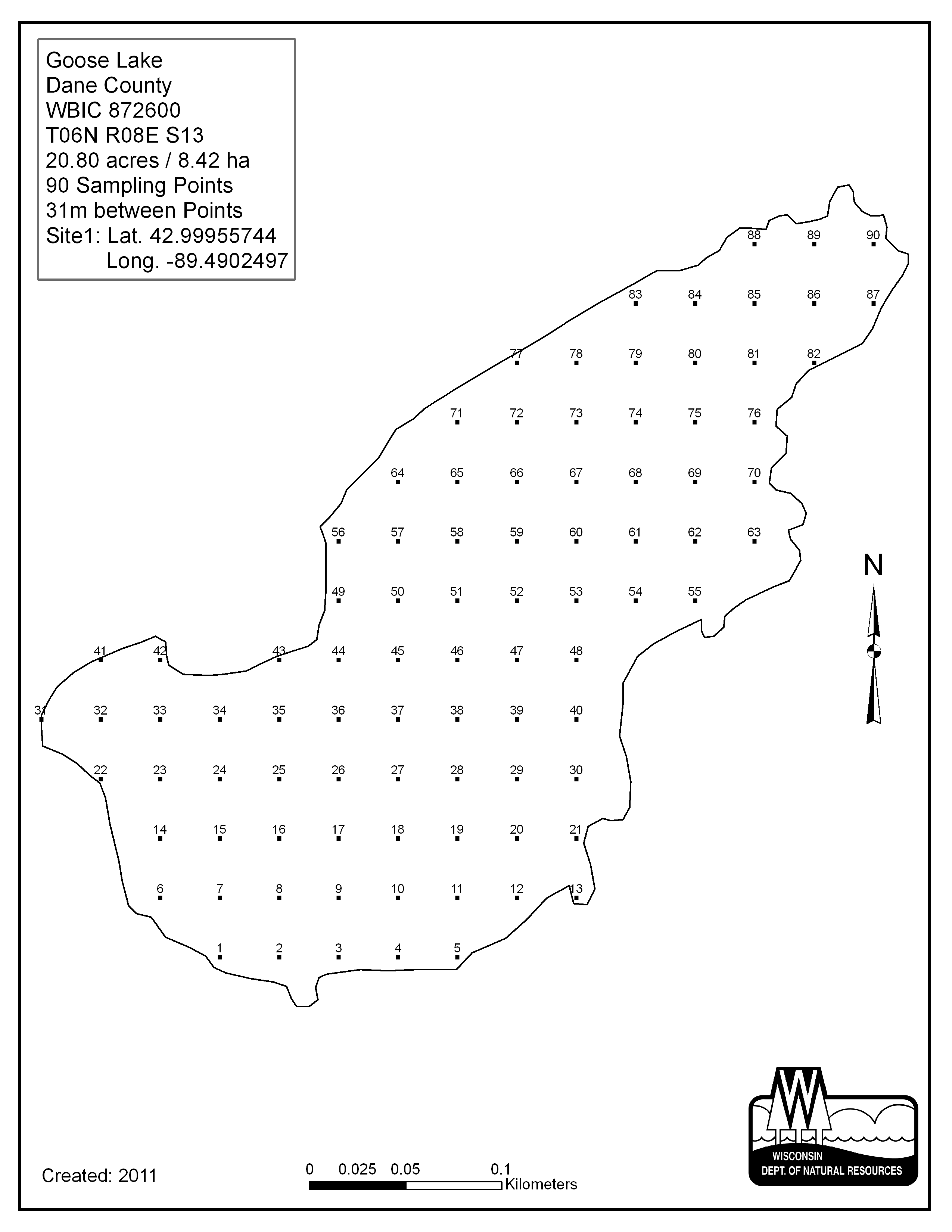 Goose Lake, Dane County - Aquatic Plant Sampling Map (31 mpts)