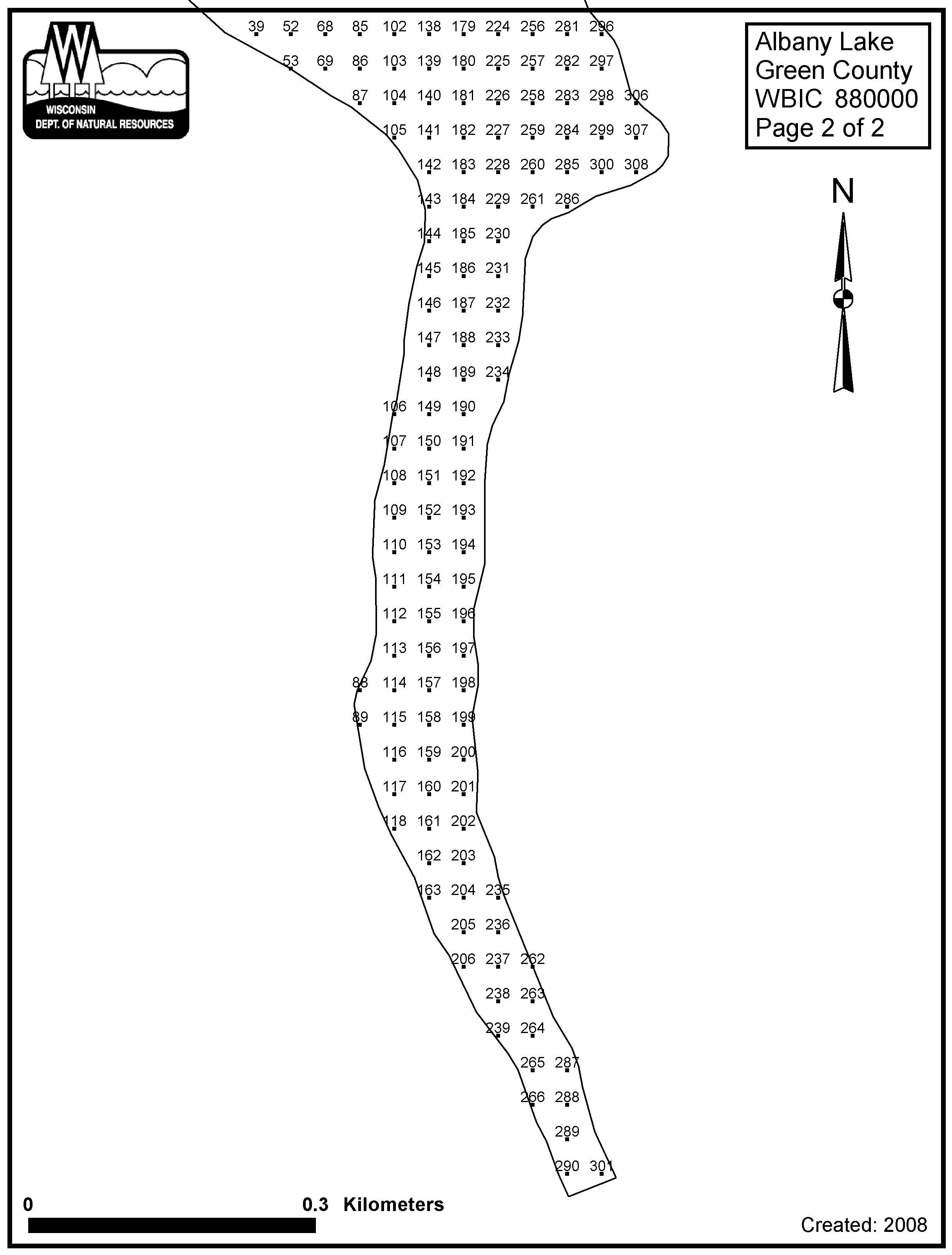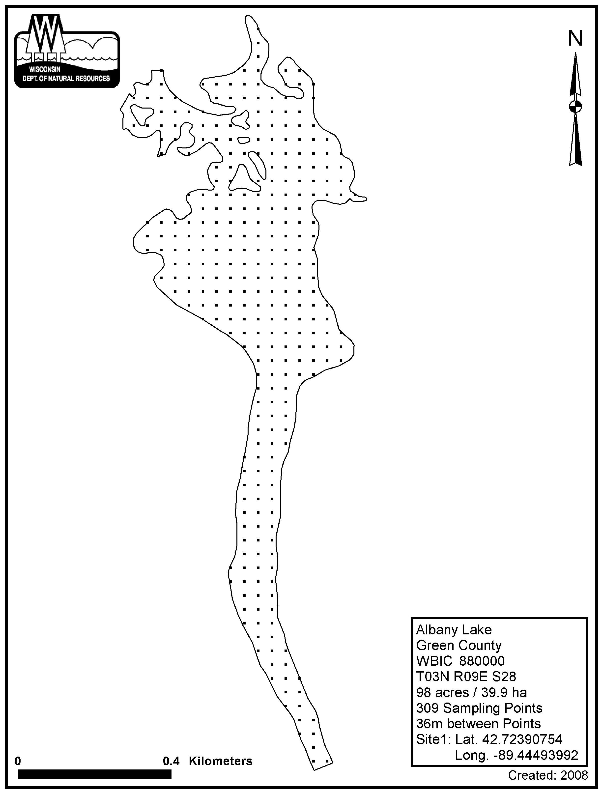 Albany Lake (Millpond), Green County - Aquatic Plant Sampling Map (2)(36 mpts)