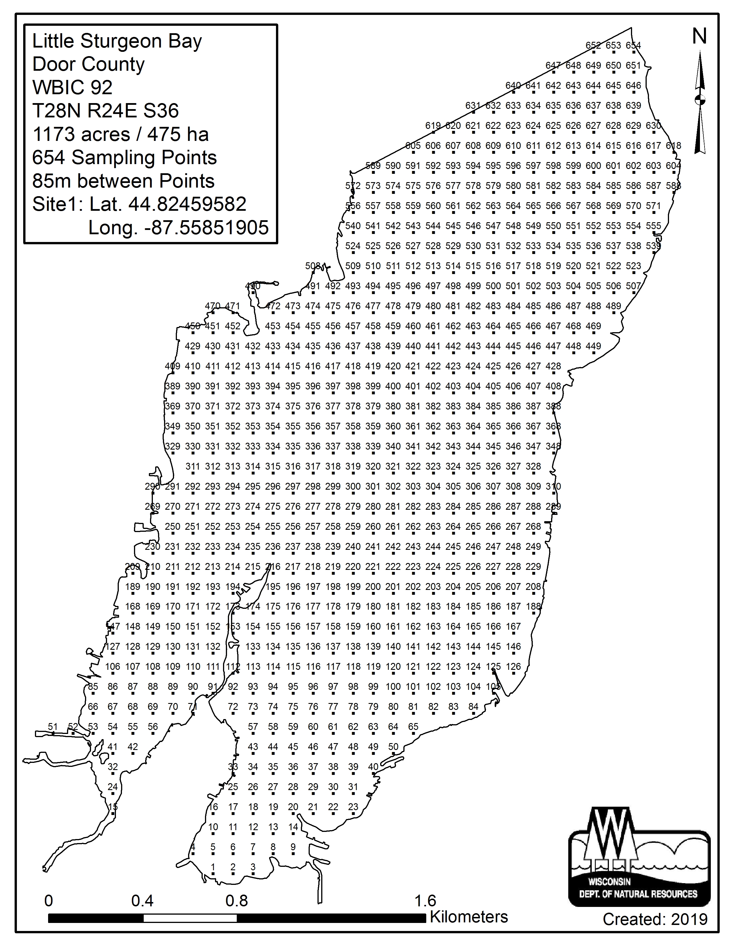 Little Sturgeon Bay, Door County - Aquatic Plant Sampling Map (85 mpts)