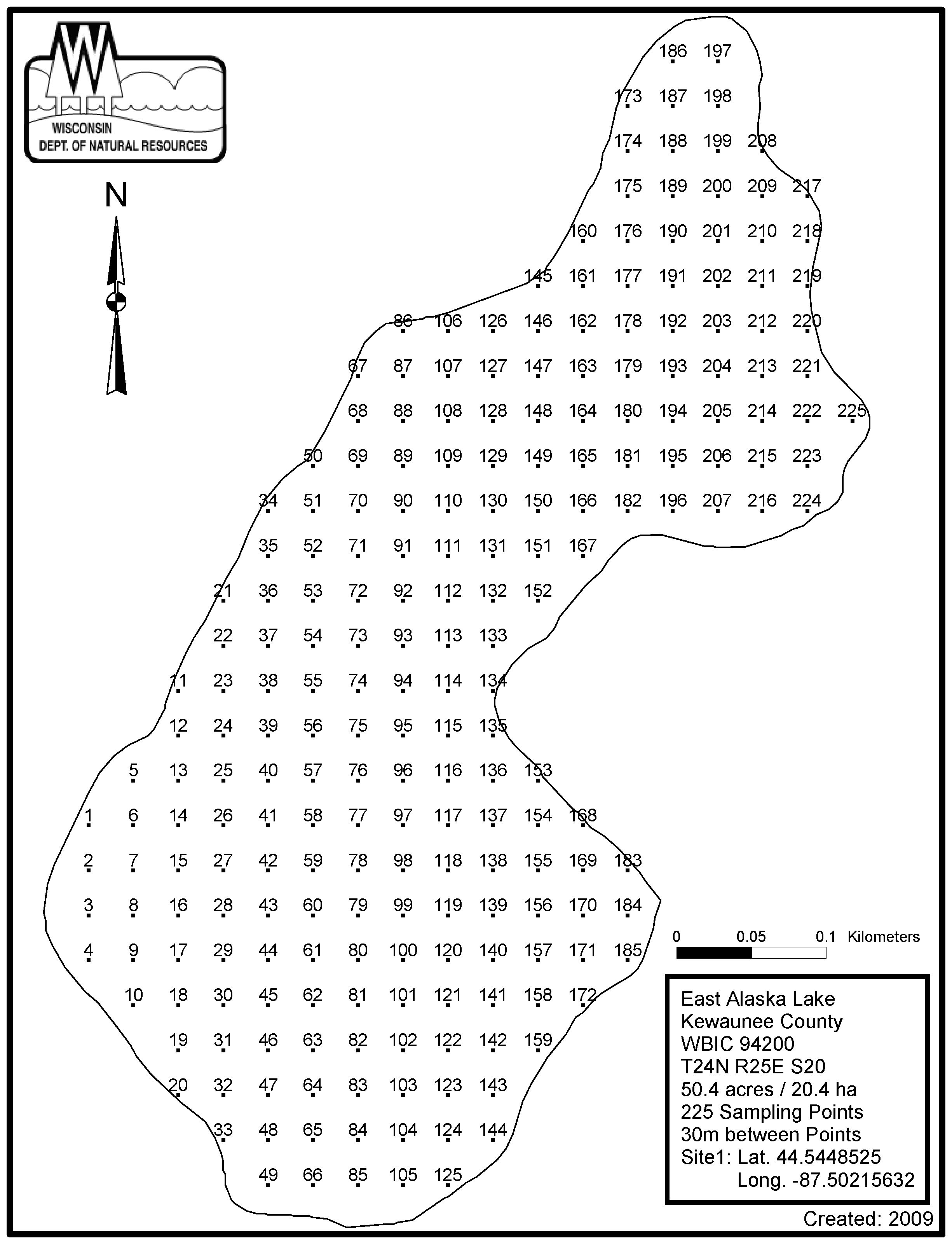 East Alaska Lake, Kewaunee County - Aquatic Plant Sampling Map (30 mpts)