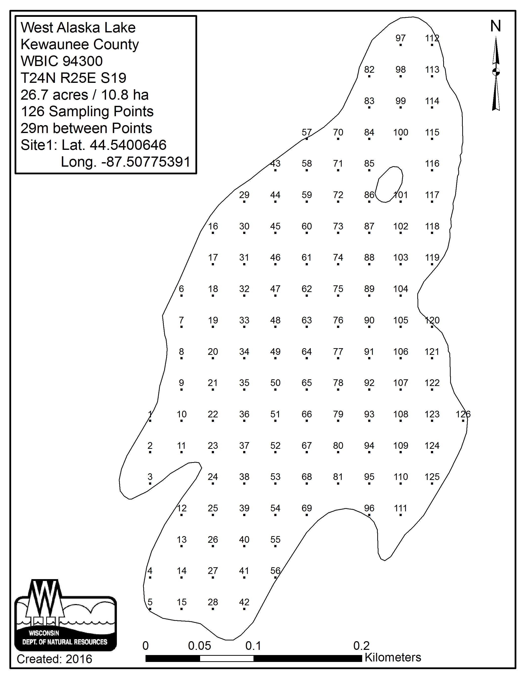 West Alaska Lake, Kewaunee County - Aquatic Plant Sampling Map (29 mpts)