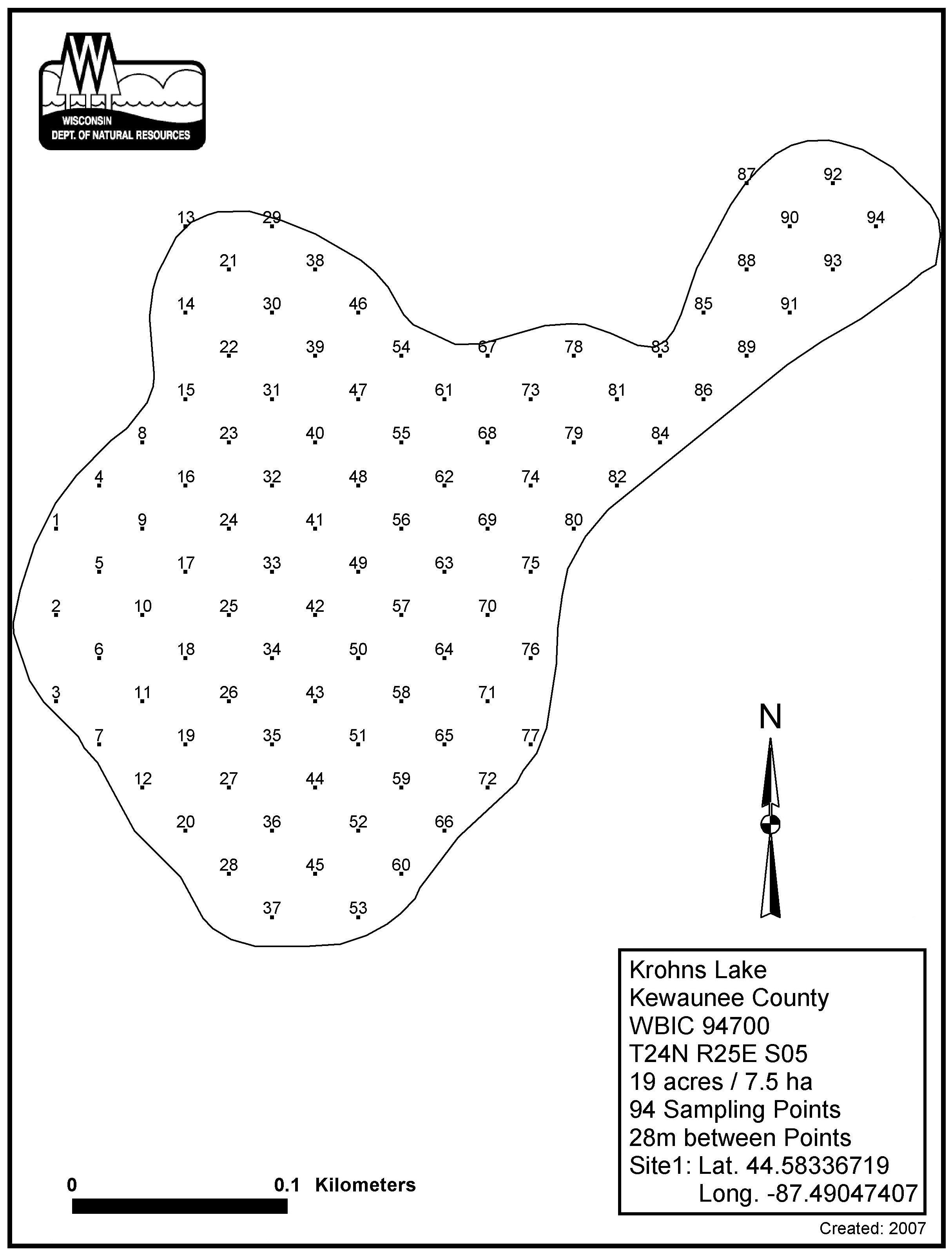 Krohns Lake, Kewaunee County - Aquatic Plant Sampling Map (28 mpts)