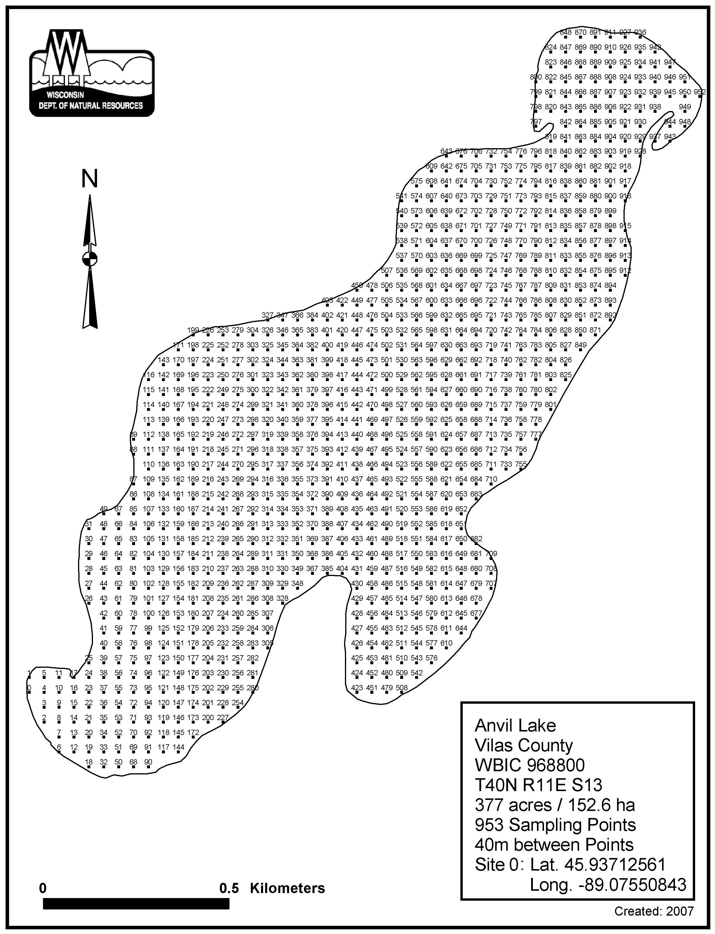 Anvil Lake, Vilas County - Aquatic Plant Sampling Map (40 mpts)