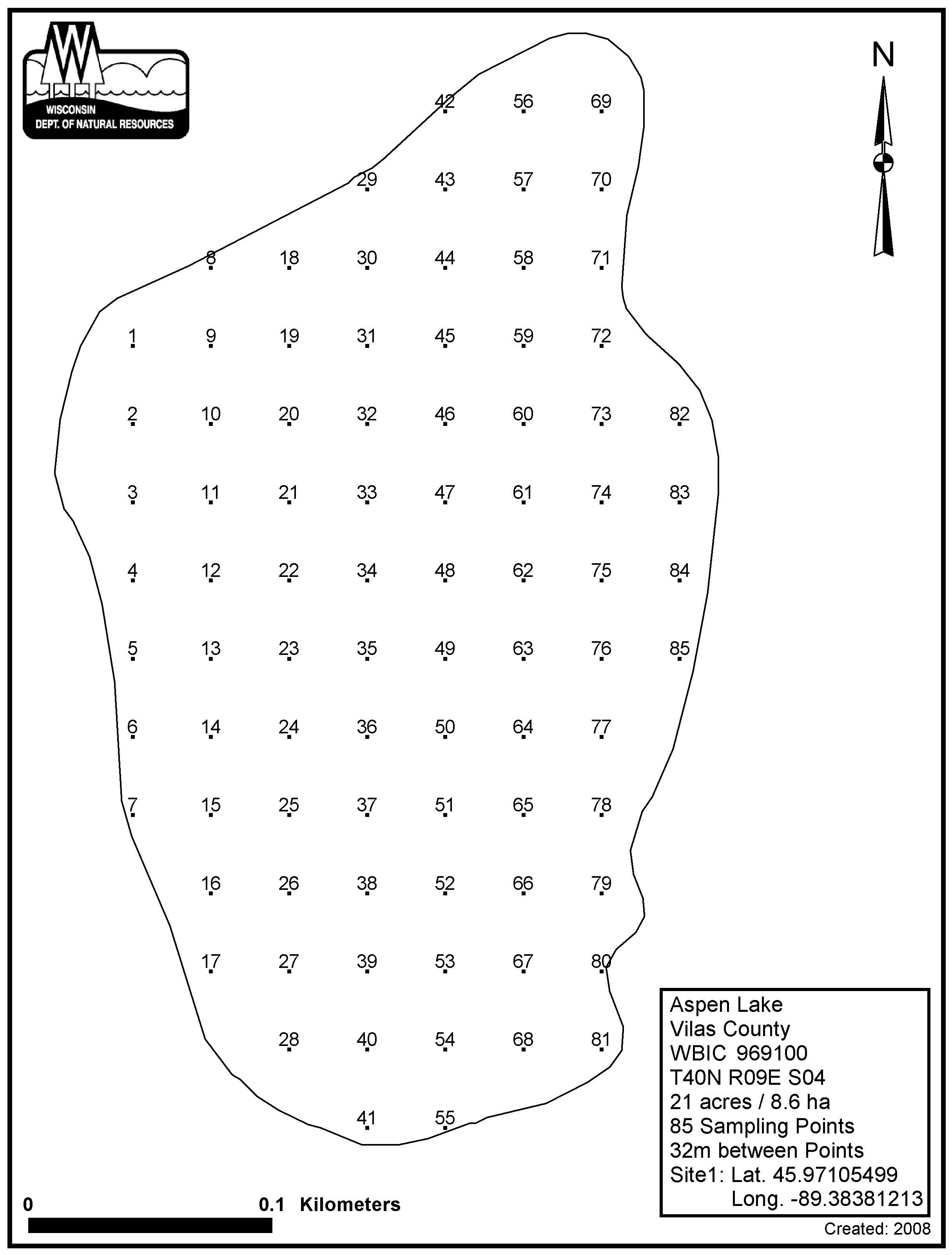 Aspen Lake, Vilas County - Aquatic Plant Sampling Map (32 mpts)