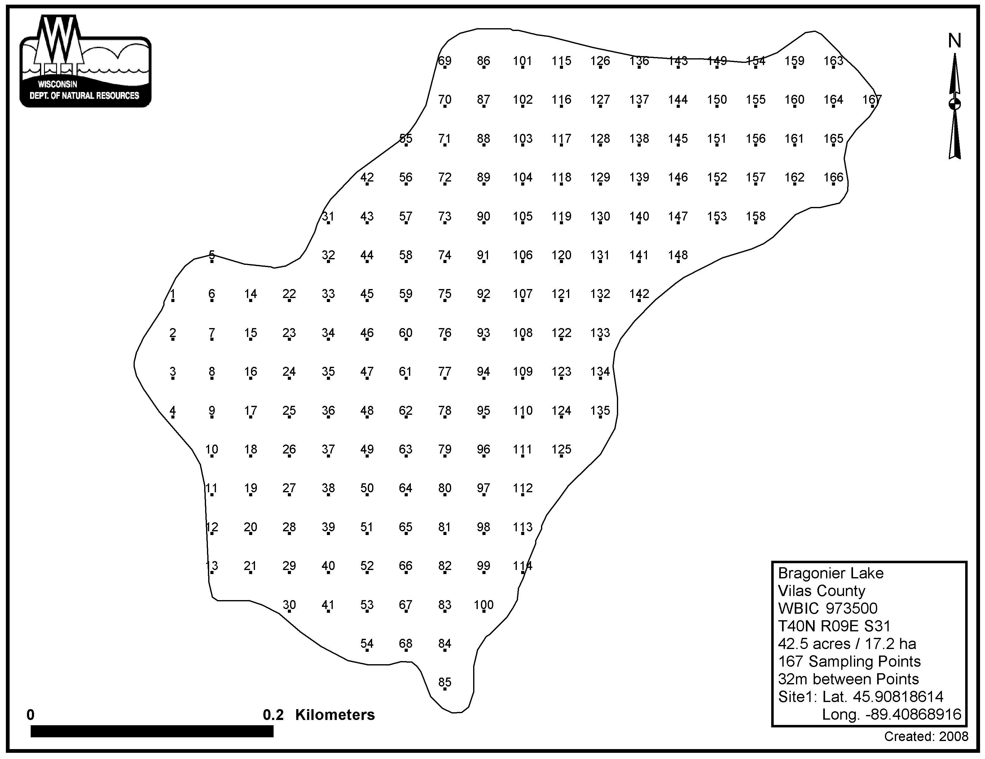 Bragonier Lake, Vilas County - Aquatic Plant Sampling Map (32 mpts)