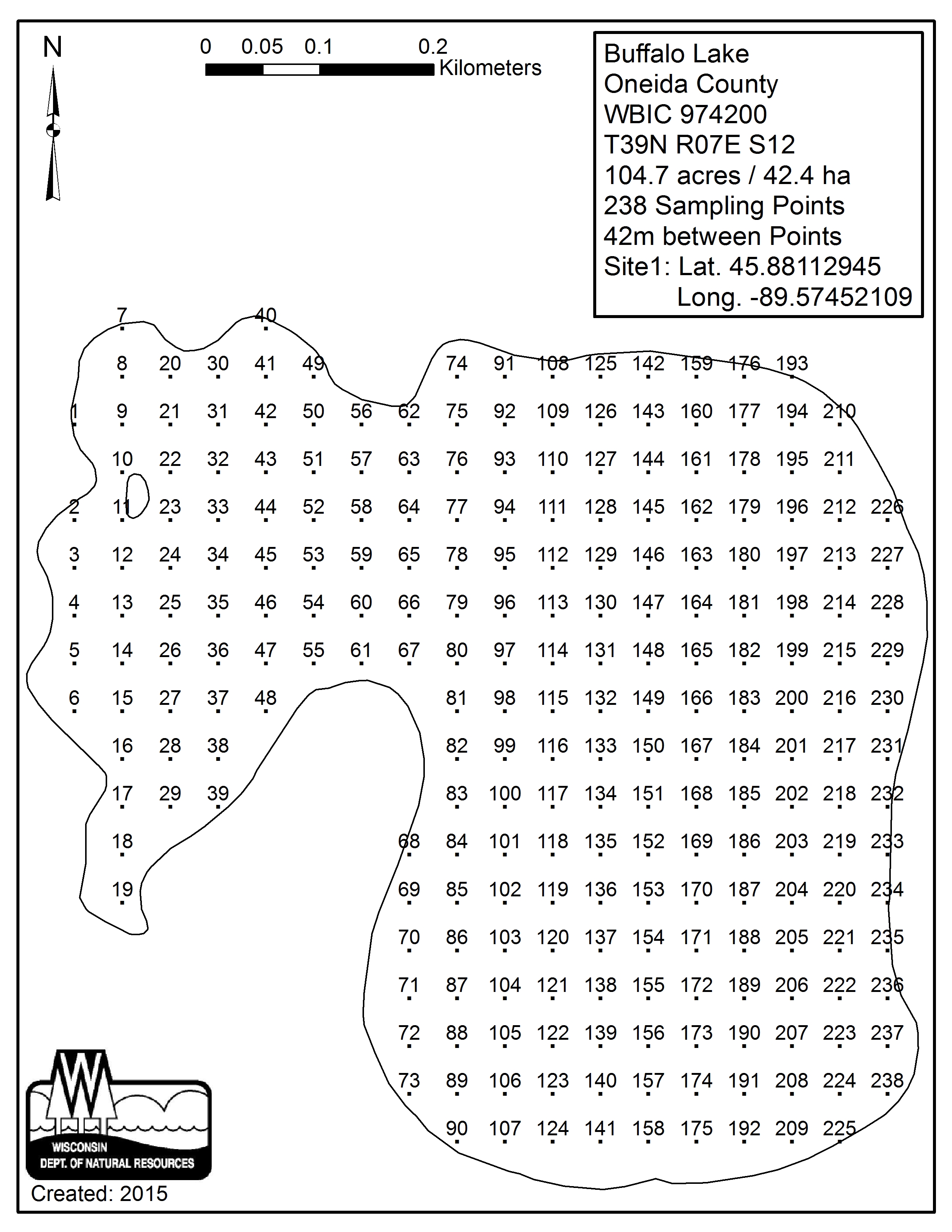 Buffalo Lake, Oneida County - Aquatic Plant Sampling Map (42 mpts)