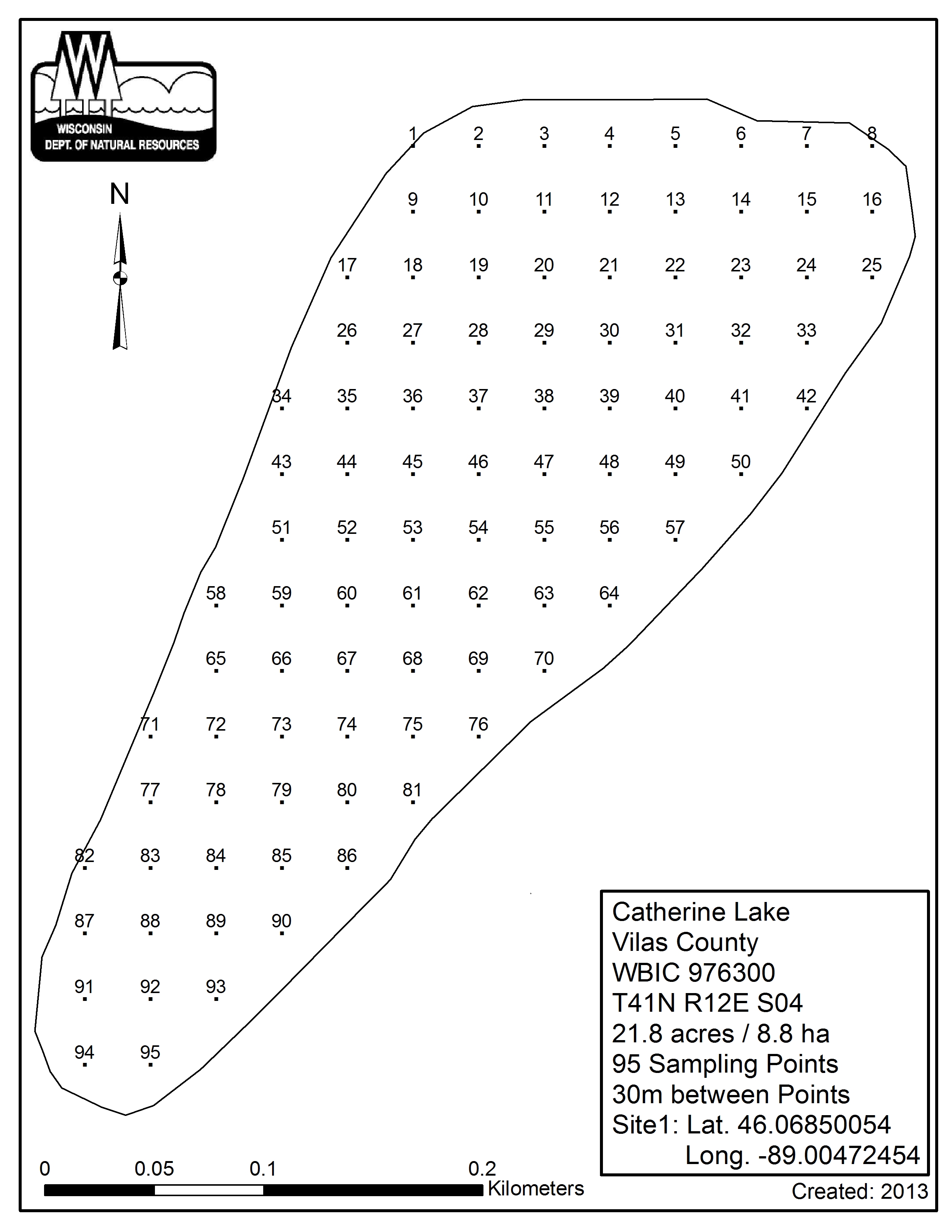 Catherine Lake, Vilas County - Aquatic Plant Sampling Map (30 mpts)