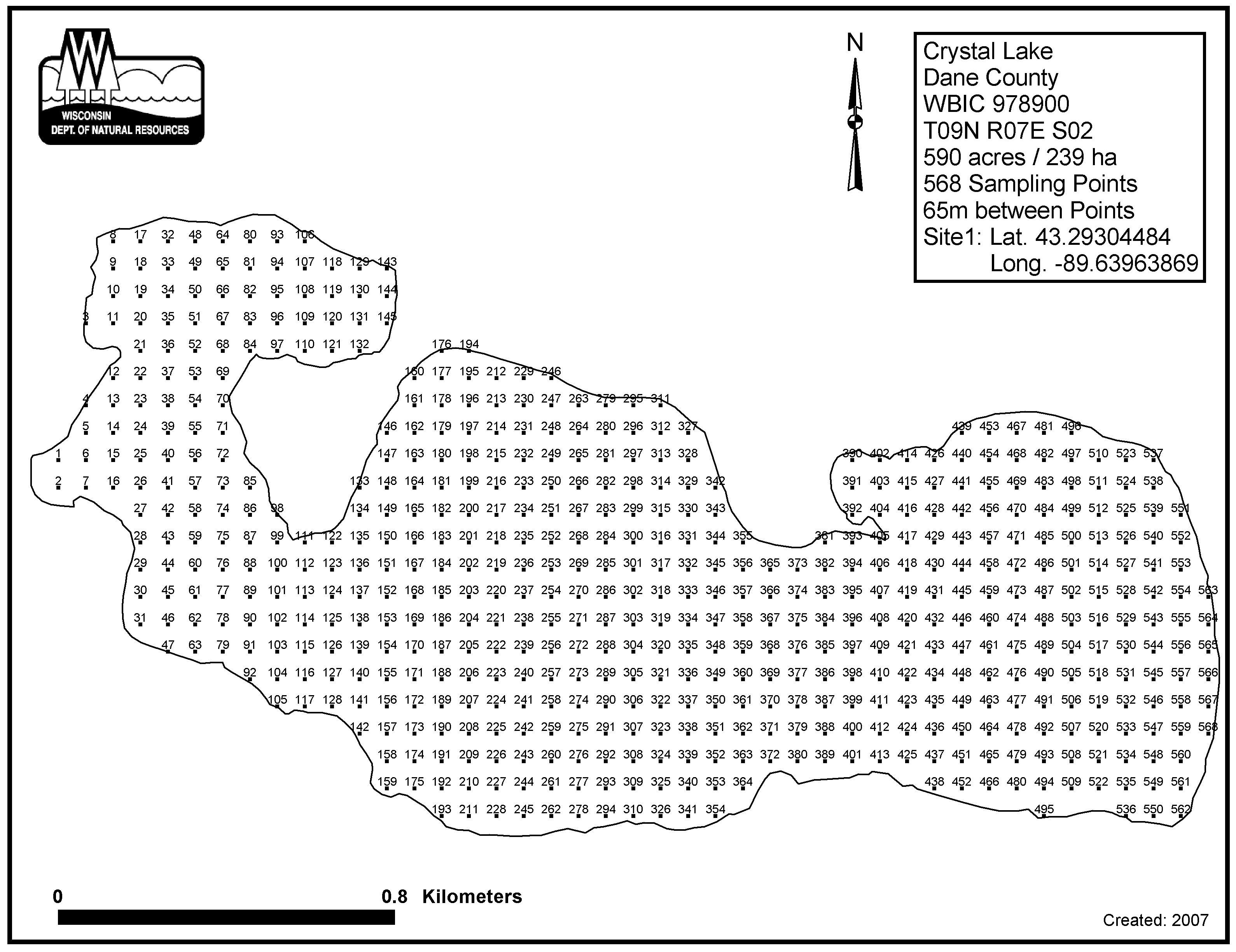 Crystal Lake, Dane County - Aquatic Plant Sampling Map (65 mpts)