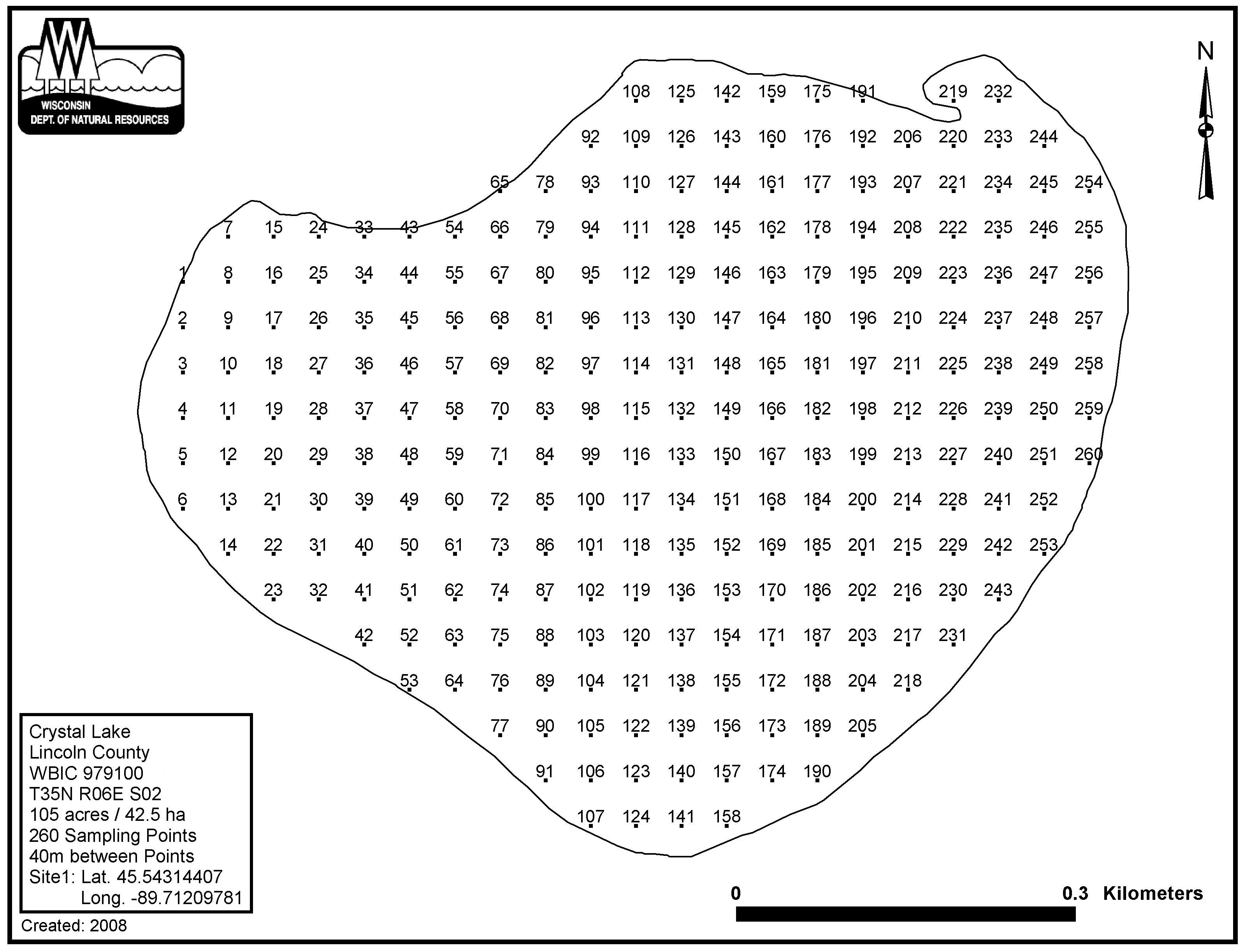 Crystal Lake, Lincoln County - Aquatic Plant Sampling Map (40 mpts)