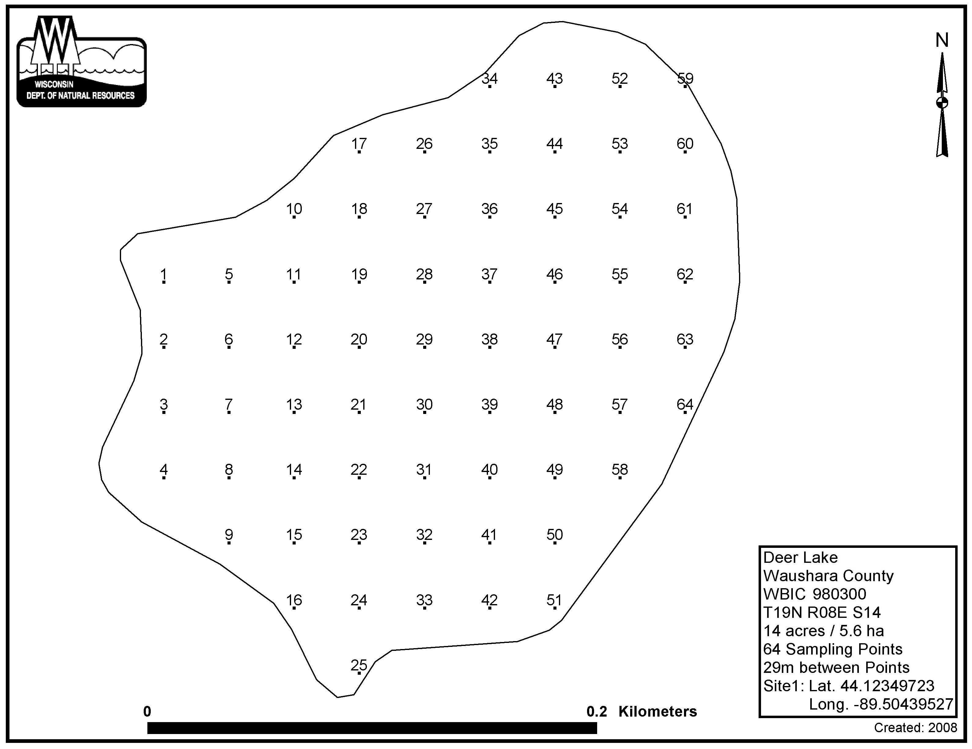 Deer Lake, Waushara County (980300) - Aquatic Plant Sampling Map (29 mpts)