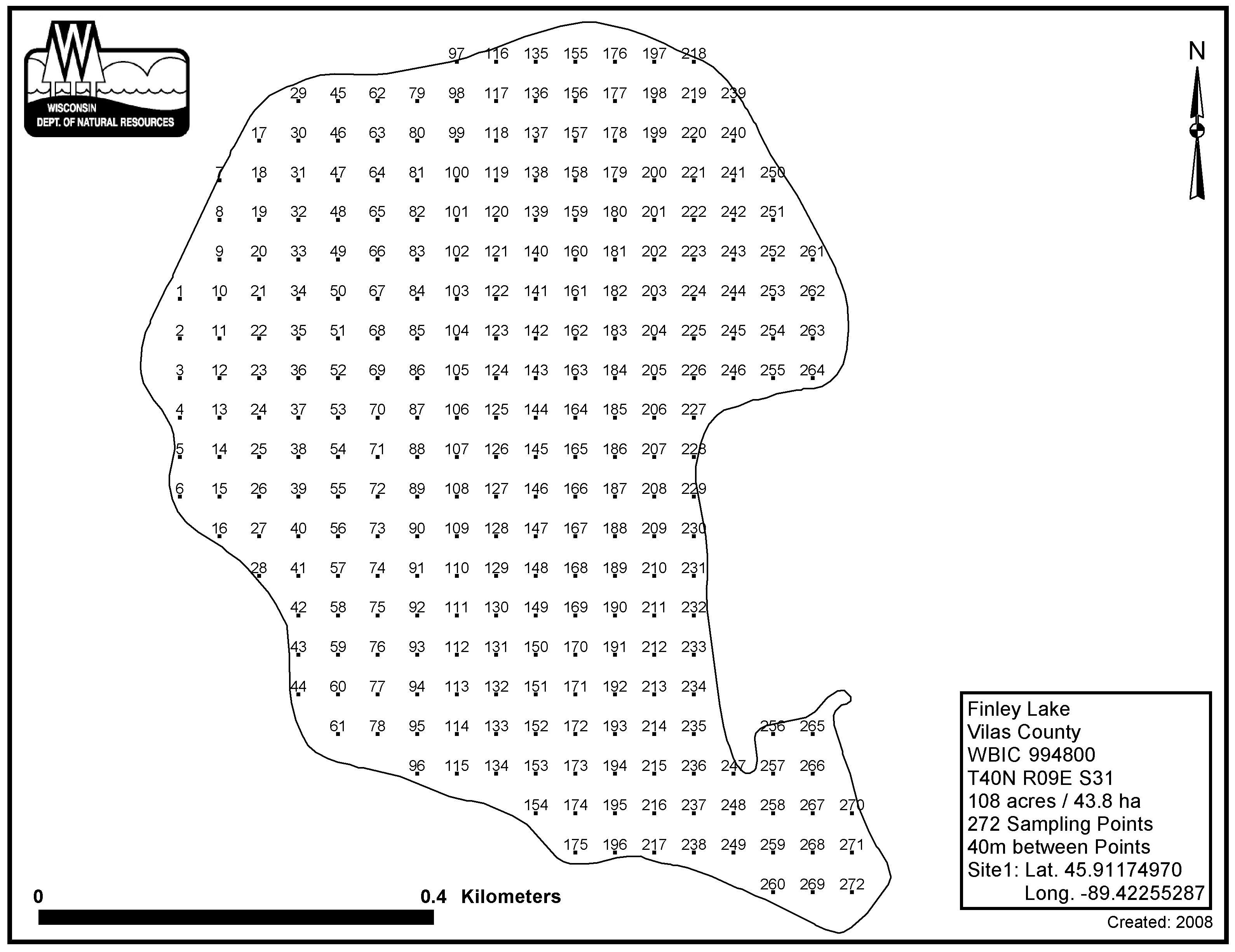 Finley Lake, Vilas County - Aquatic Plant Sampling Map (40 mpts)