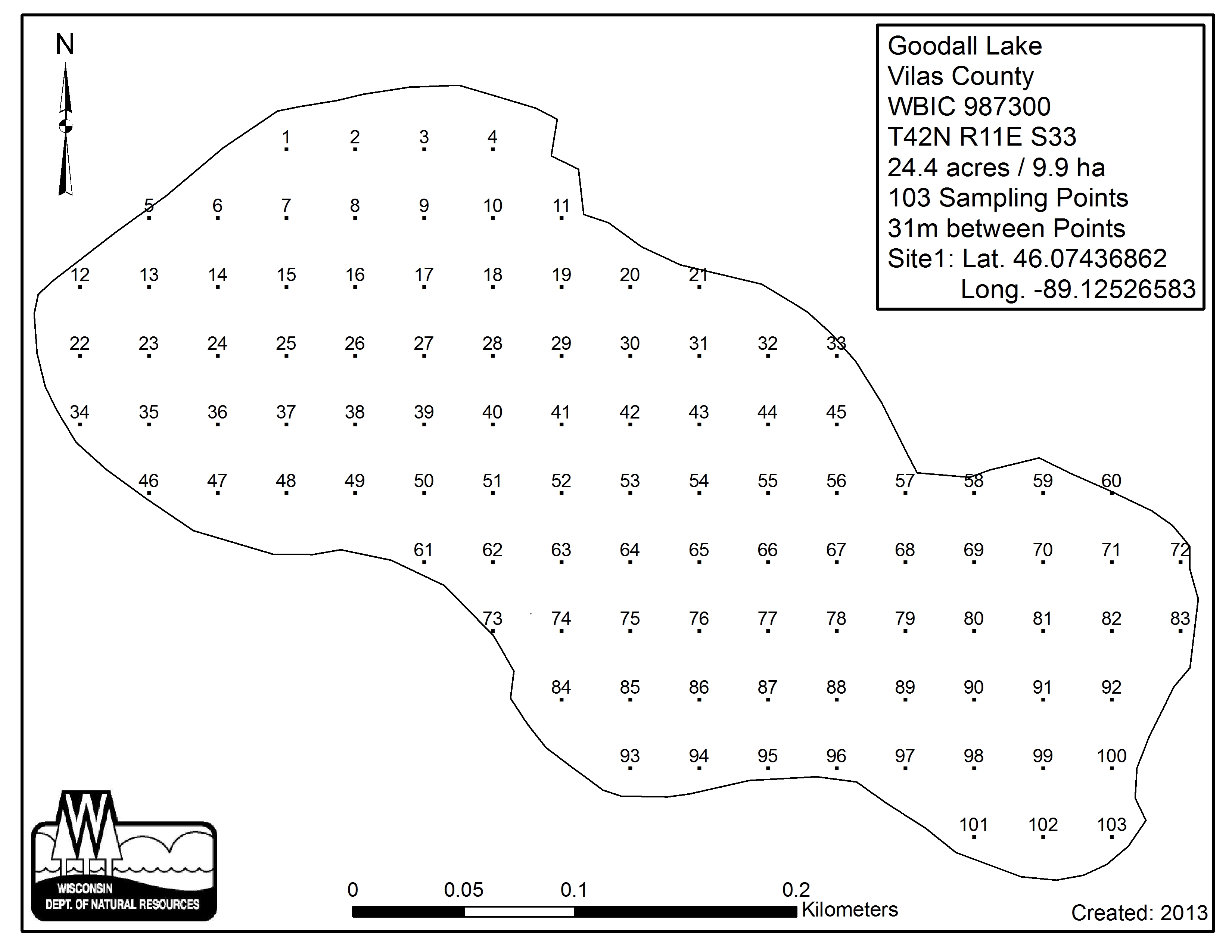 Goodall Lake, Vilas County - Aquatic Plant Sampling Map (31 mpts)