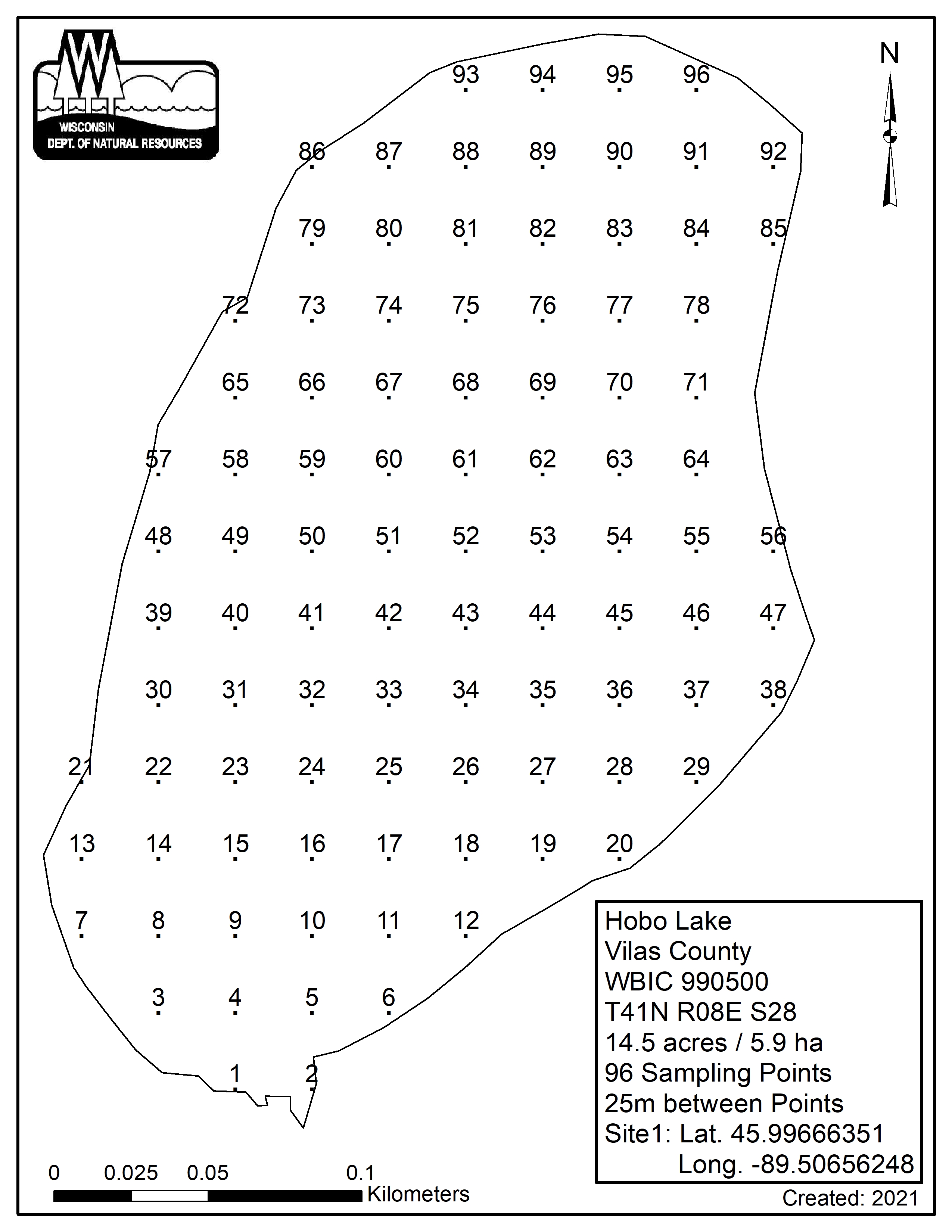 Hobo Lake, Vilas County - Aquatic Plant Sampling Map (25 mpts)