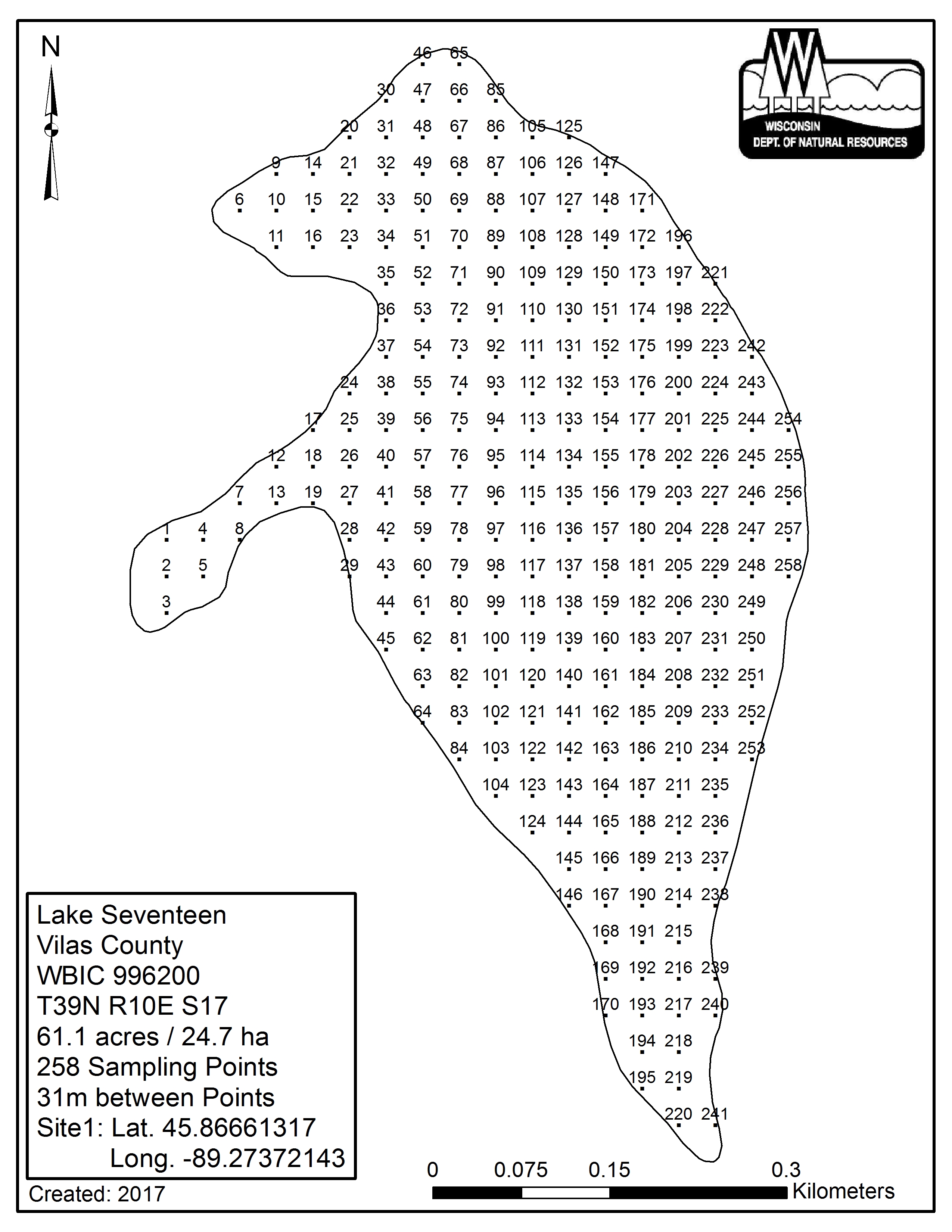 Lake Seventeen, Vilas County - Aquatic Plant Sampling Map (31 mpts)