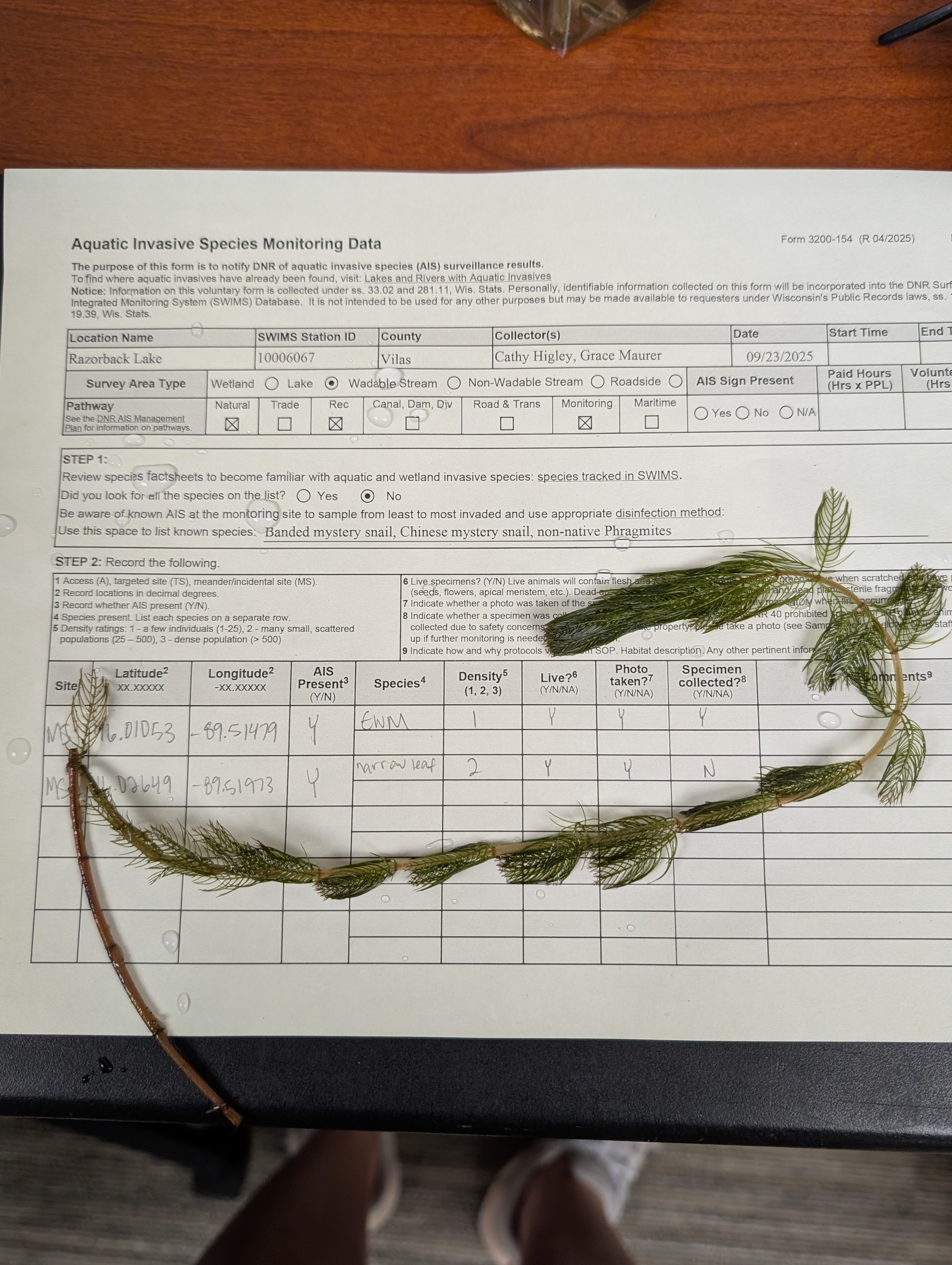 3) Deliver suspect AIS to WDNR